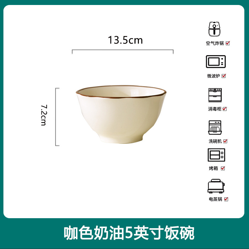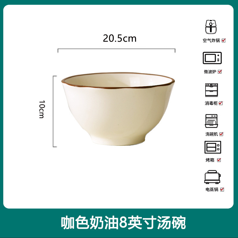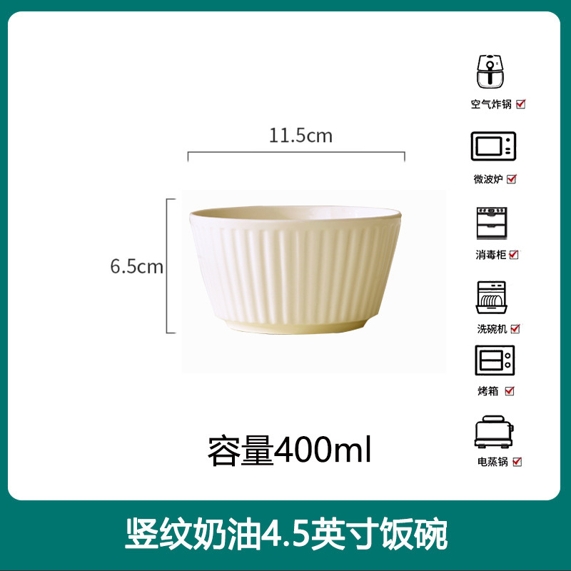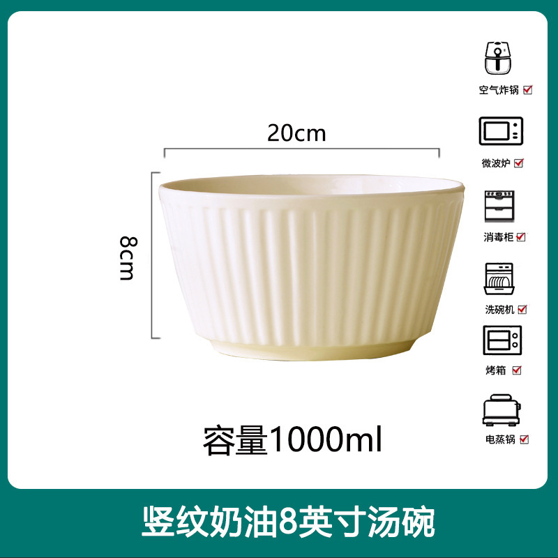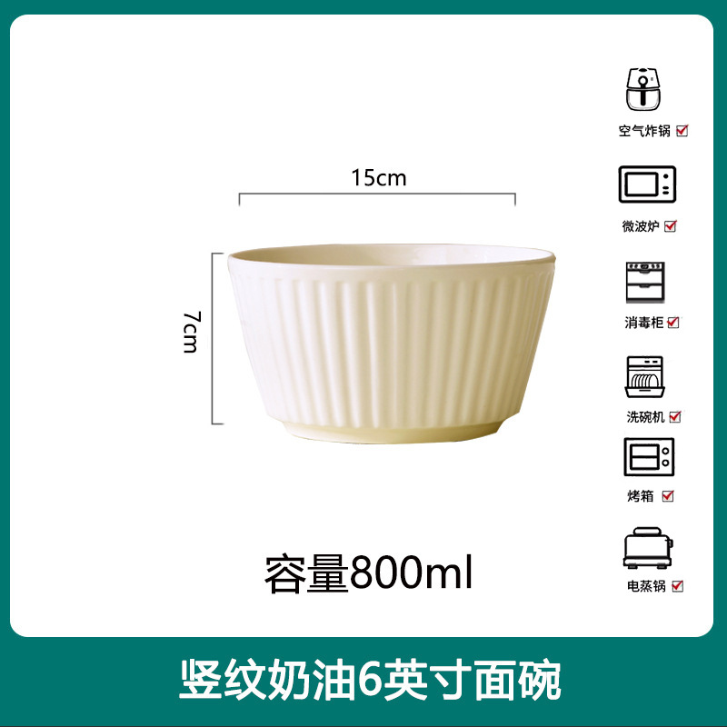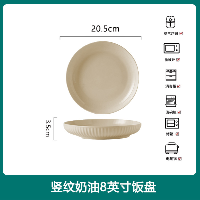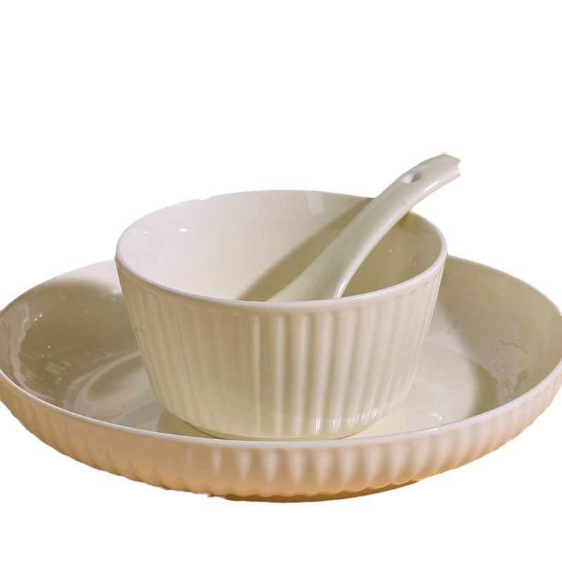 Vertical pattern anti slip high aesthetic light luxury cream style household ceramic tableware set bowl, plate, dish surface, soup bowl, fish plate, free