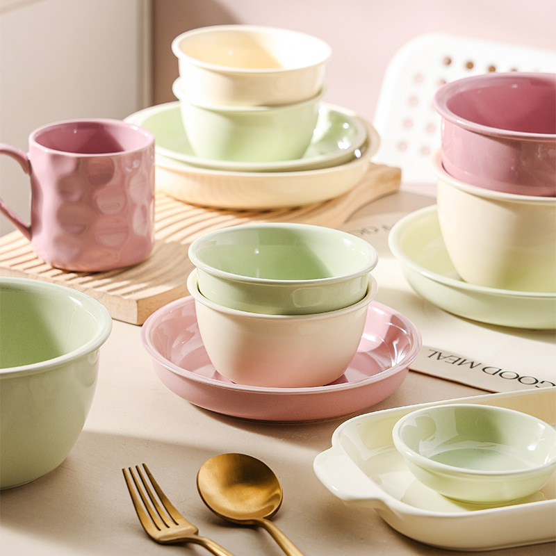 Milk whoosh tableware bowls for home use 2024 new underglaze color ceramic bowls and plates complete set of creative ceramic bowls for home use wholesale