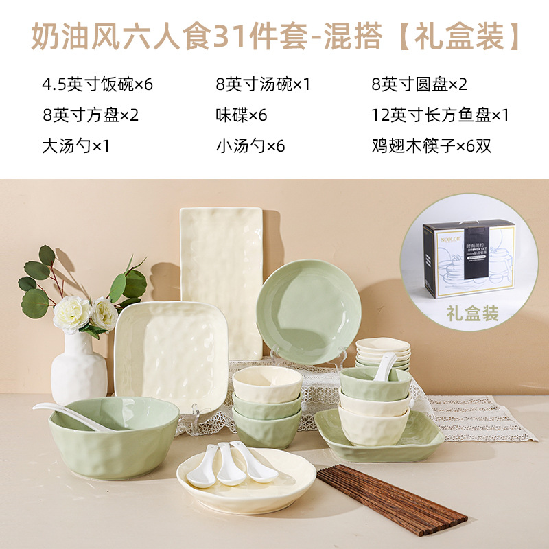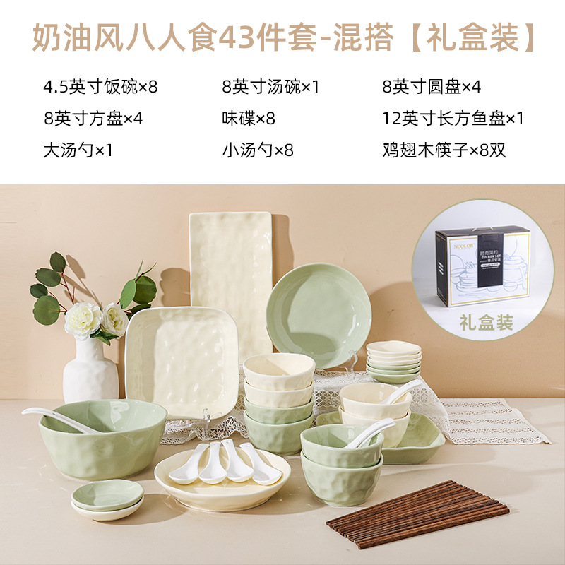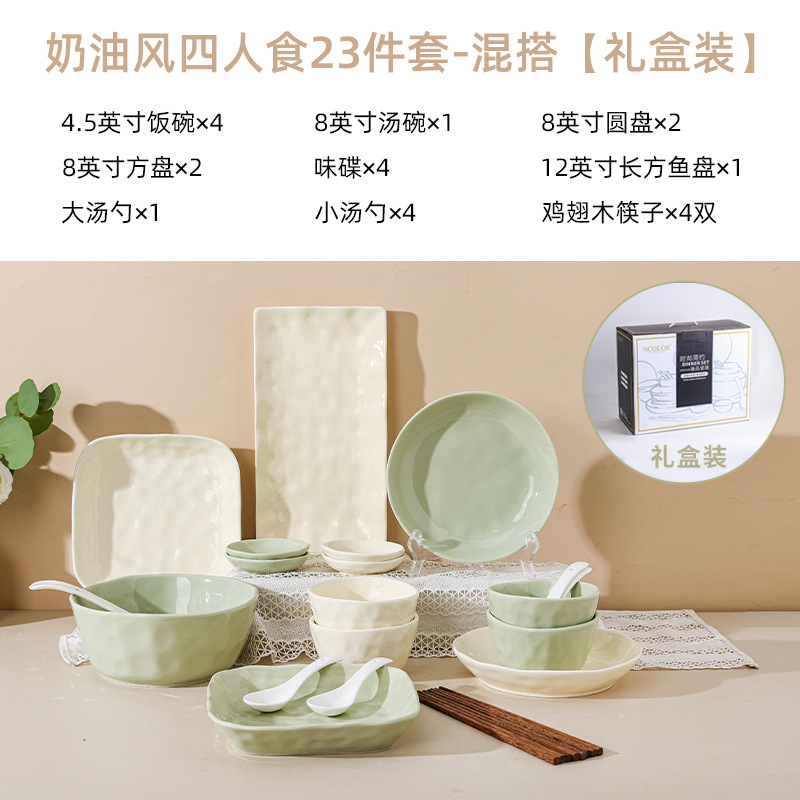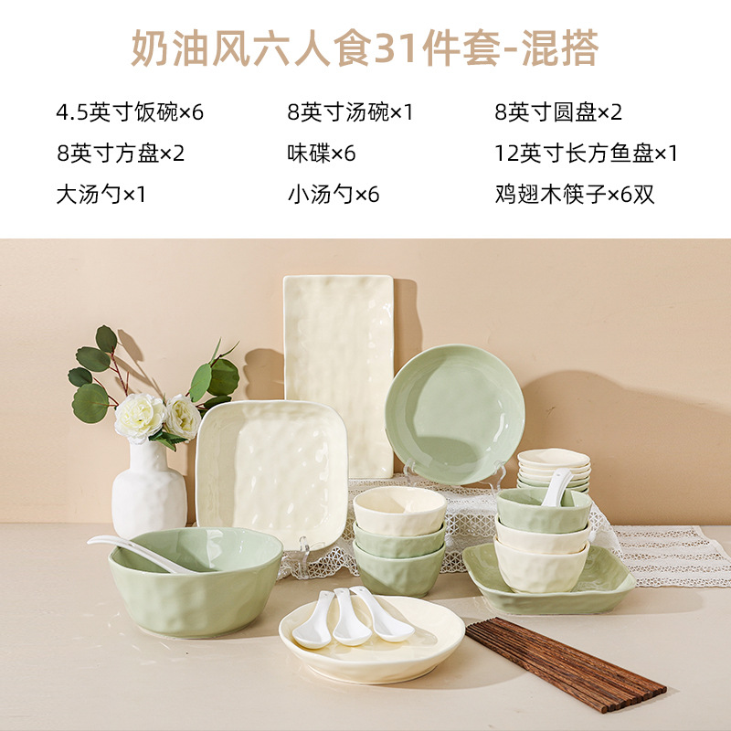 Cream style bowl and dish set for home use, bowl and dish set for home use, 2024 new dish set for high-end light luxury