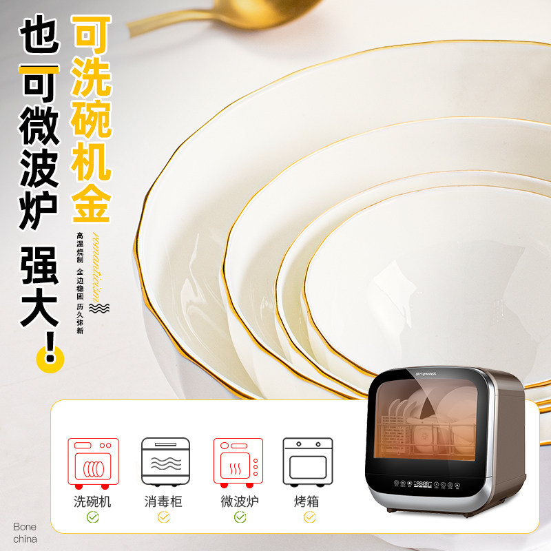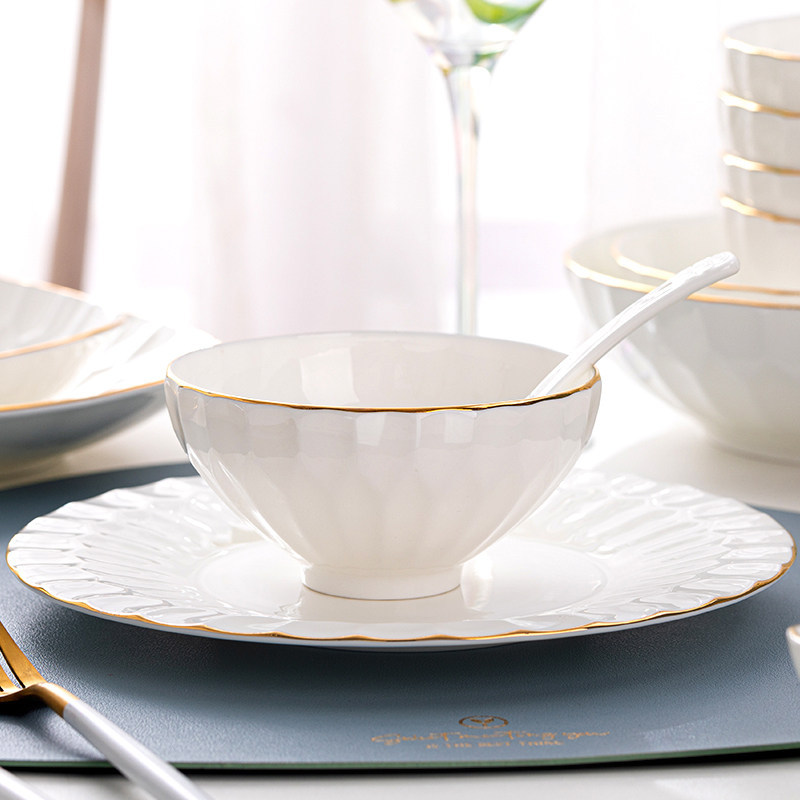 Ceramic household European bone china tableware, bowls, plates, plates, and household business gift combinations can be freely matched