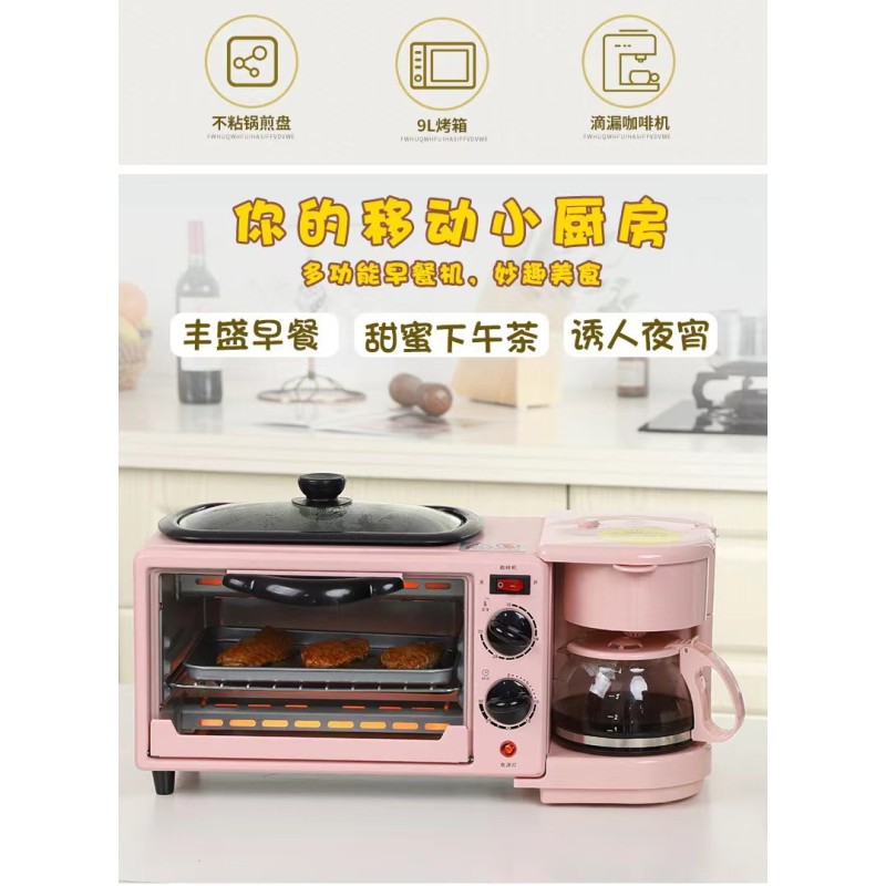 Cross border European standard three in one multifunctional household breakfast machine, Duoshi stove, mini electric oven, bread maker, coffee machine