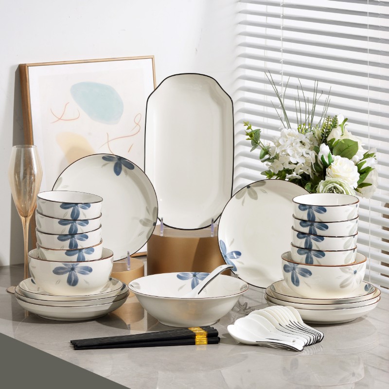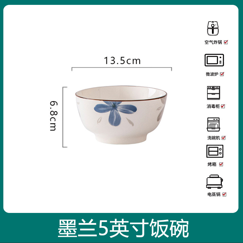 Chinese ceramic household dining bowl, instant noodles bowl set, soup bowl, rice bowl, high aesthetic value, ins design sense