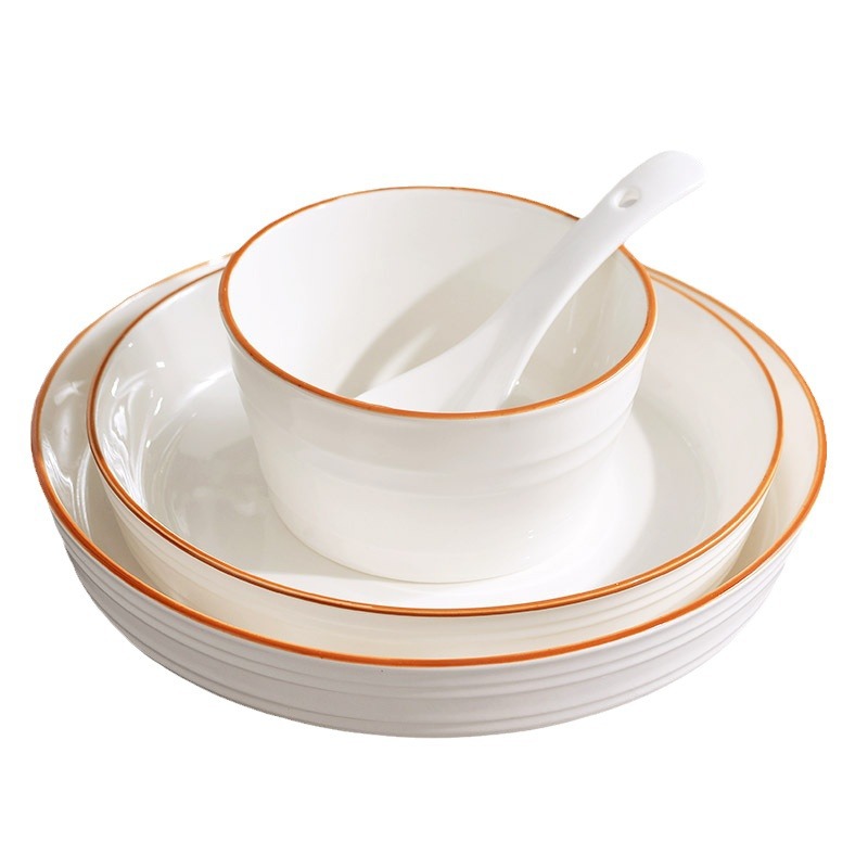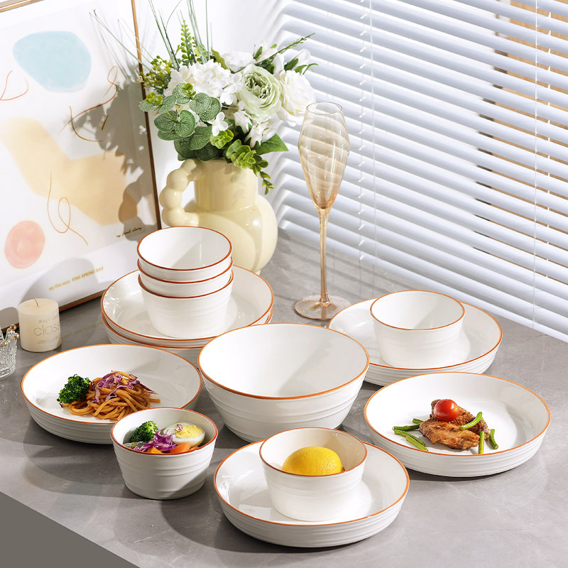 High aesthetic underglaze color light luxury cream style household ceramic tableware set, bowls, plates, noodles, soup bowls, fish dishes, free