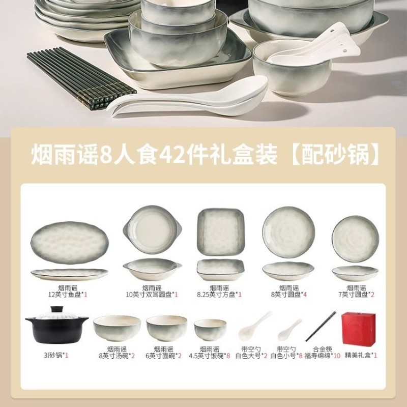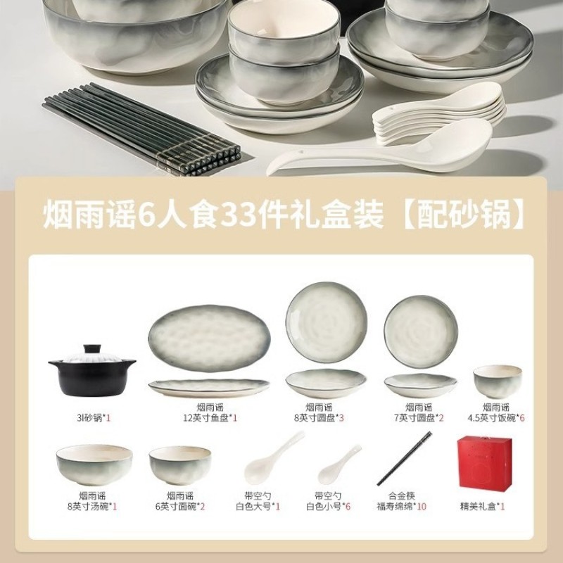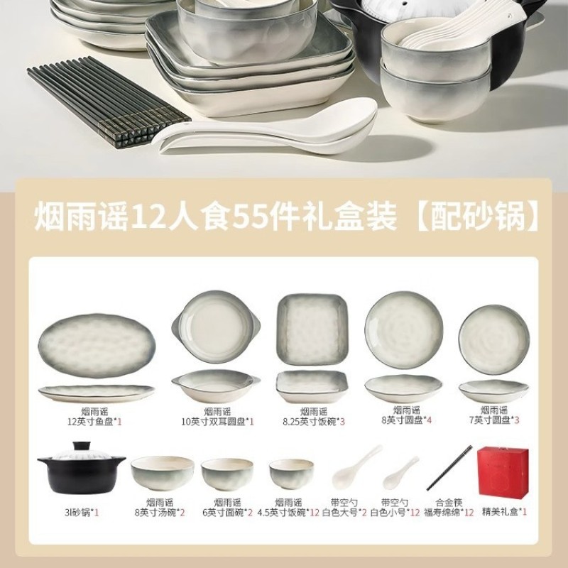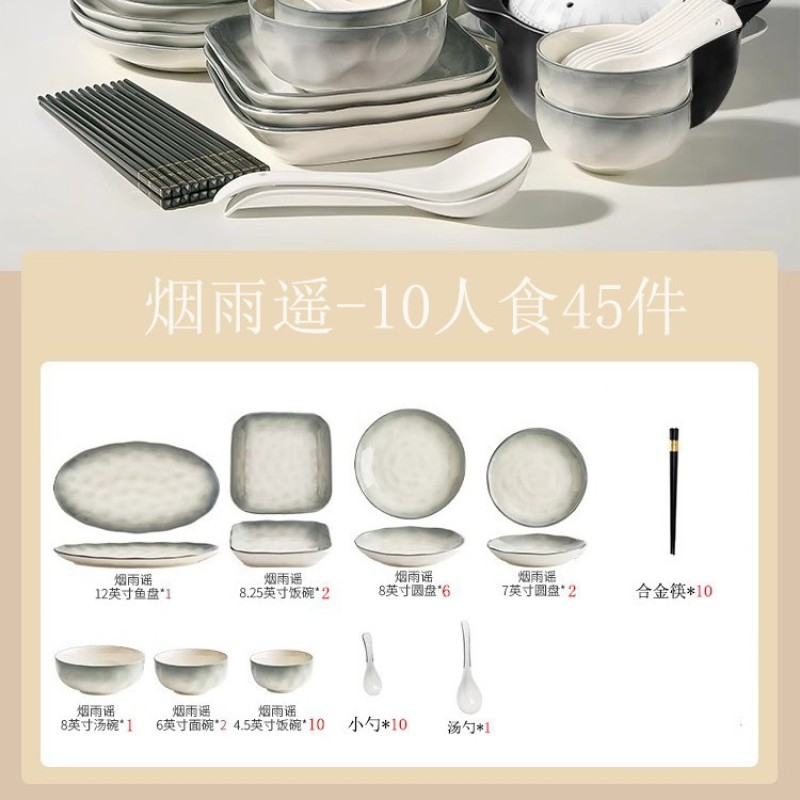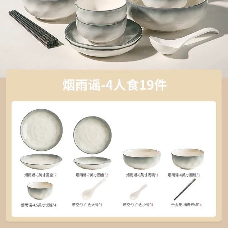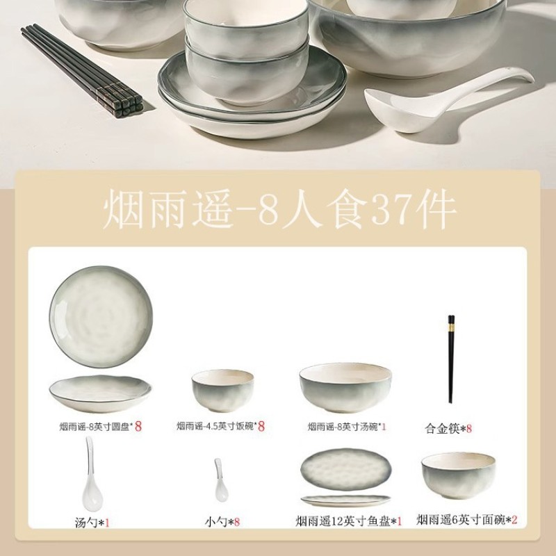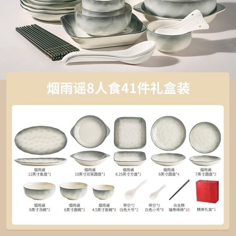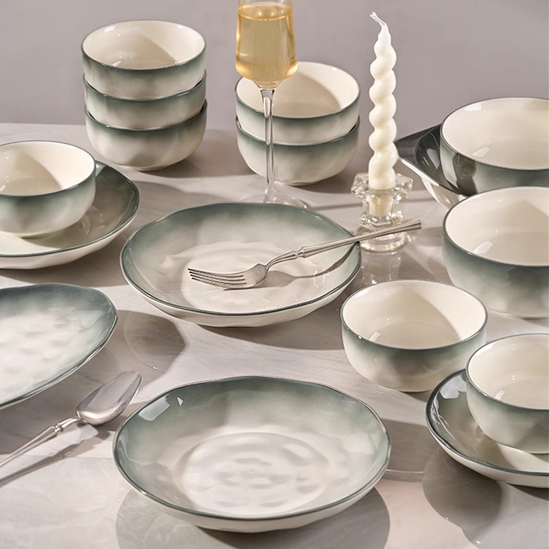 High end feeling bowl and dish set for home use 2024 new simple bowl and dish for housewarming, ceramic underglaze color tableware and dishes