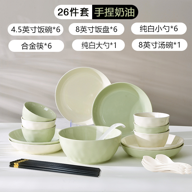 Cream style household high aesthetic light luxury ceramic tableware bowls, plates, noodles, soup bowls, fish plates, free combination gifts