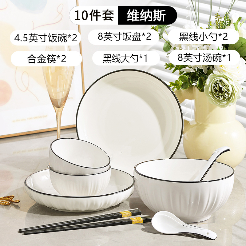 Home relief bowl, plate, soup bowl 2024 new ceramic tableware set, bowl utensils, rice bowl, plate combination simple
