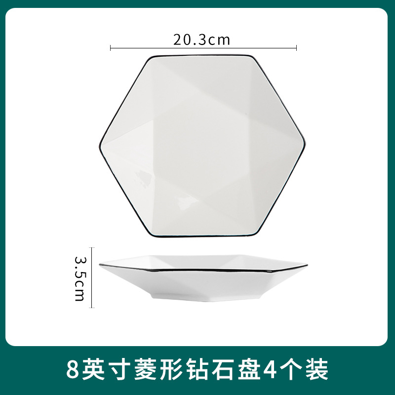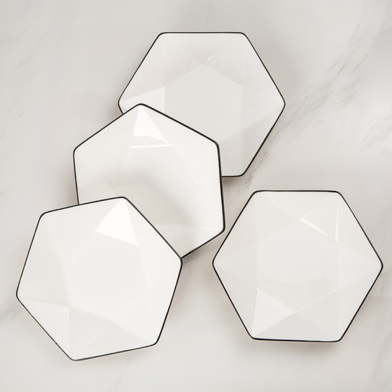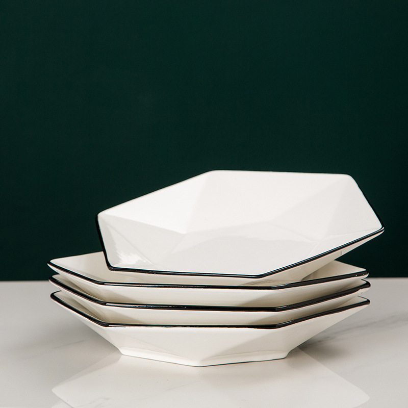 4-pack black line vegetable plate light luxury household ceramic tableware set modern simple Western food plate plate fruit plate set