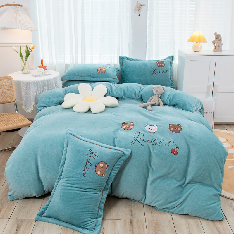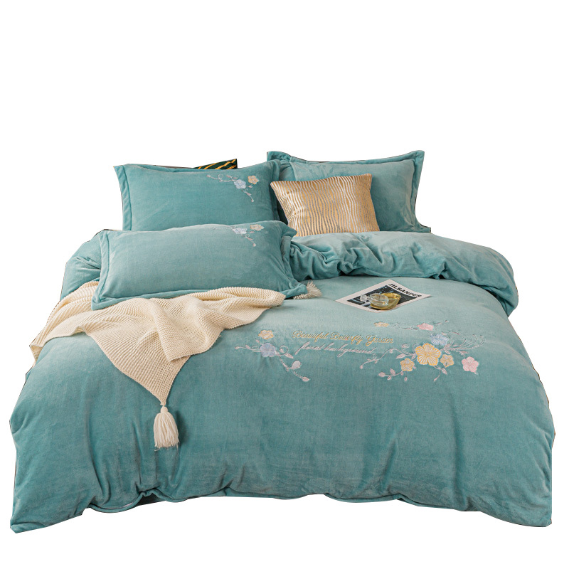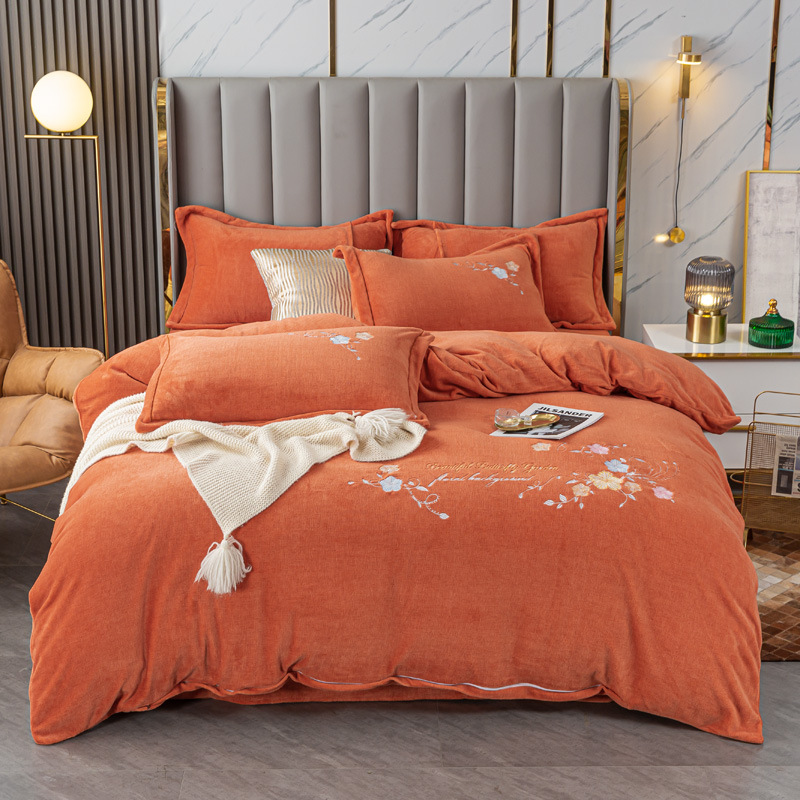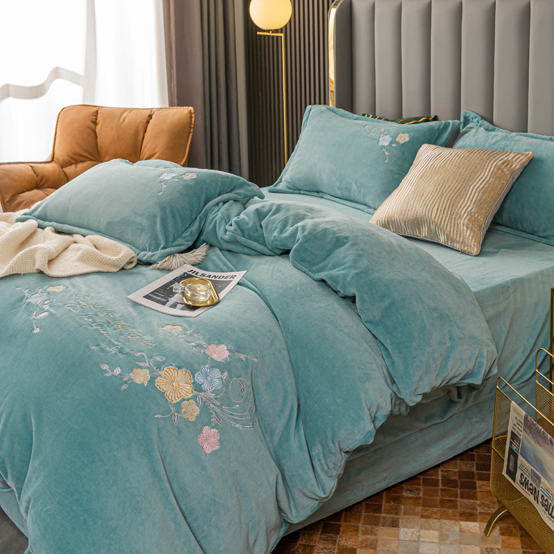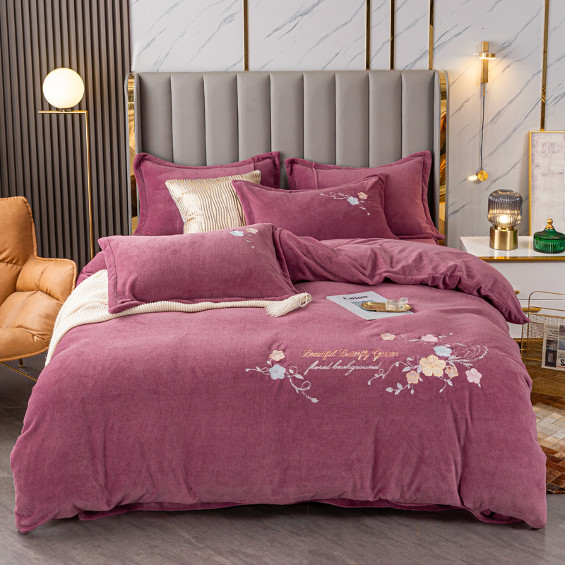 Autumn and Winter New Product Thickened Milk Velvet Embroidered 4-piece Set High Weight Velvet 4-piece Set Embroidered Bedding Set Wholesale