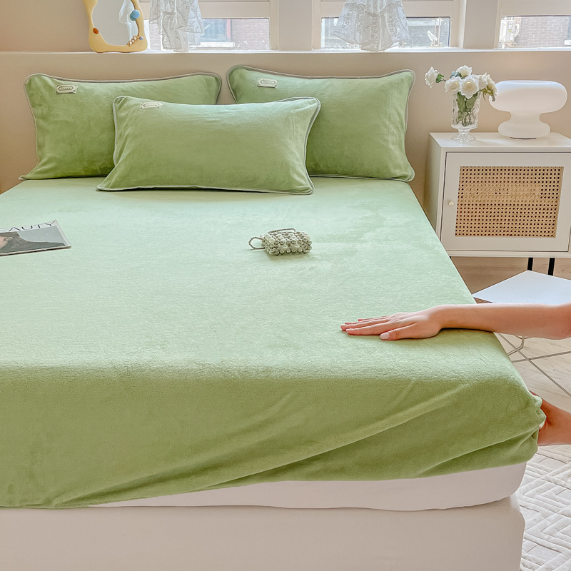 Edge wrapped bed sheet - Apple green [A-class quality thickened and warm]