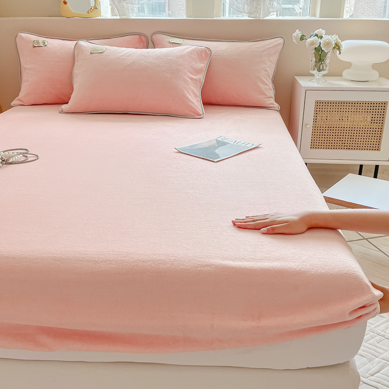 Wrapped bed sheet - pink [A-class quality thickened and warm]