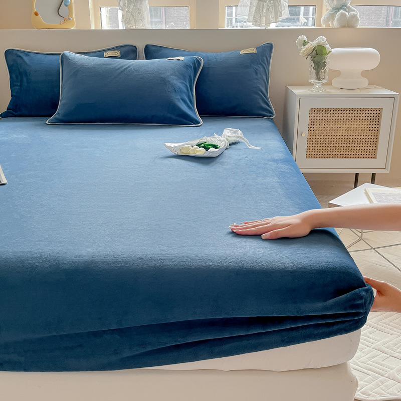 Edge wrapped bed sheet - Indigo [A-class quality thickened and warm]