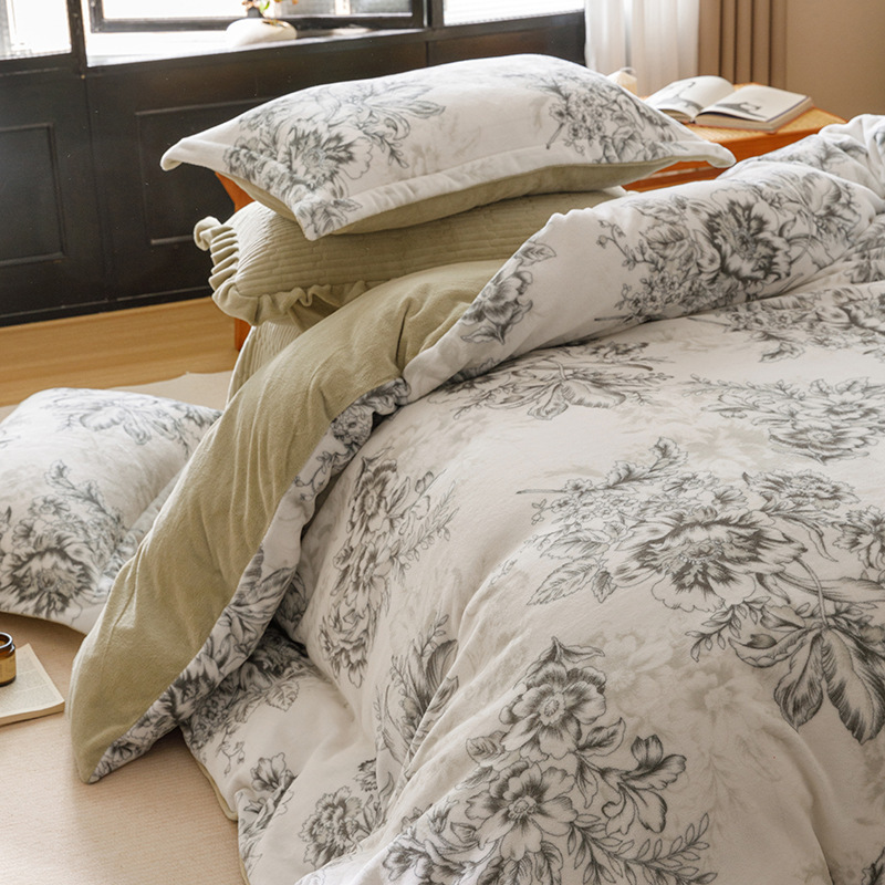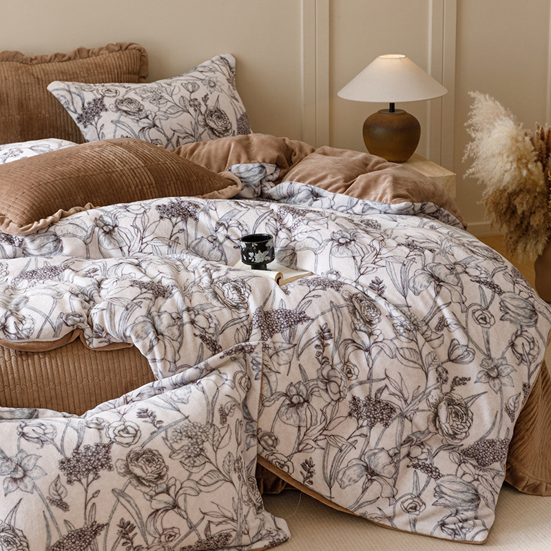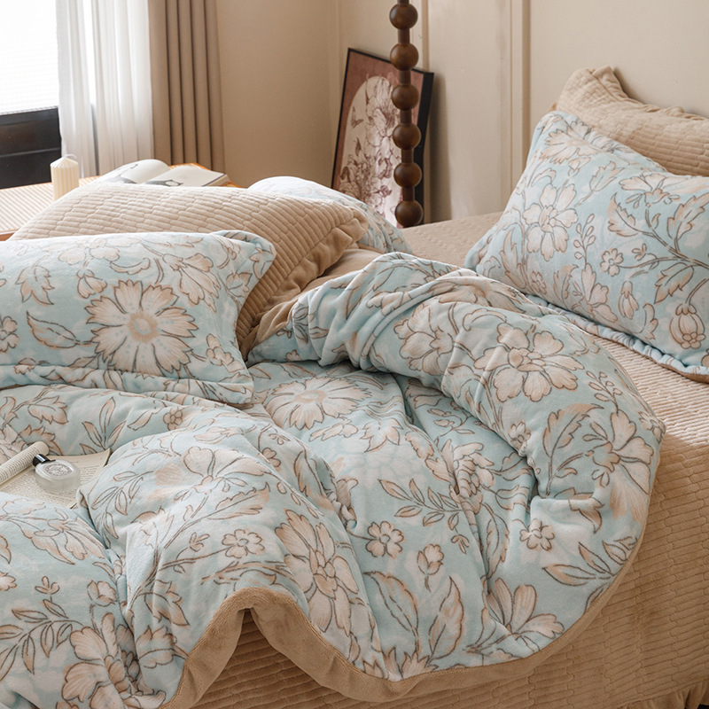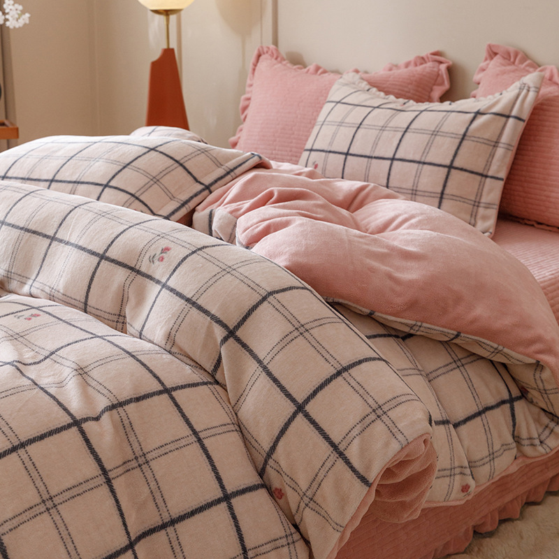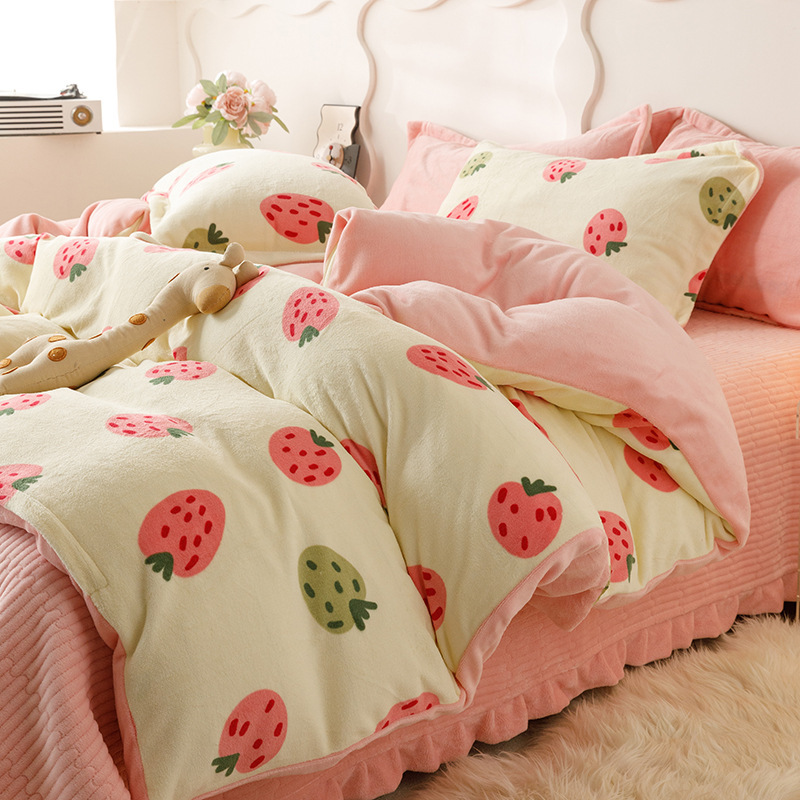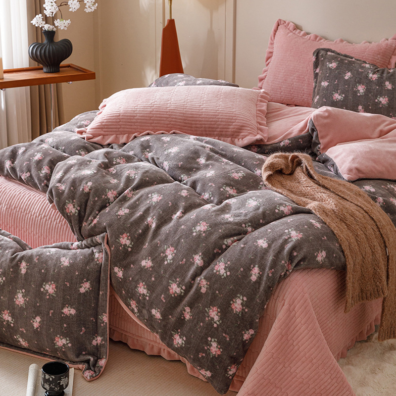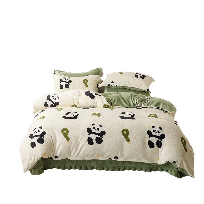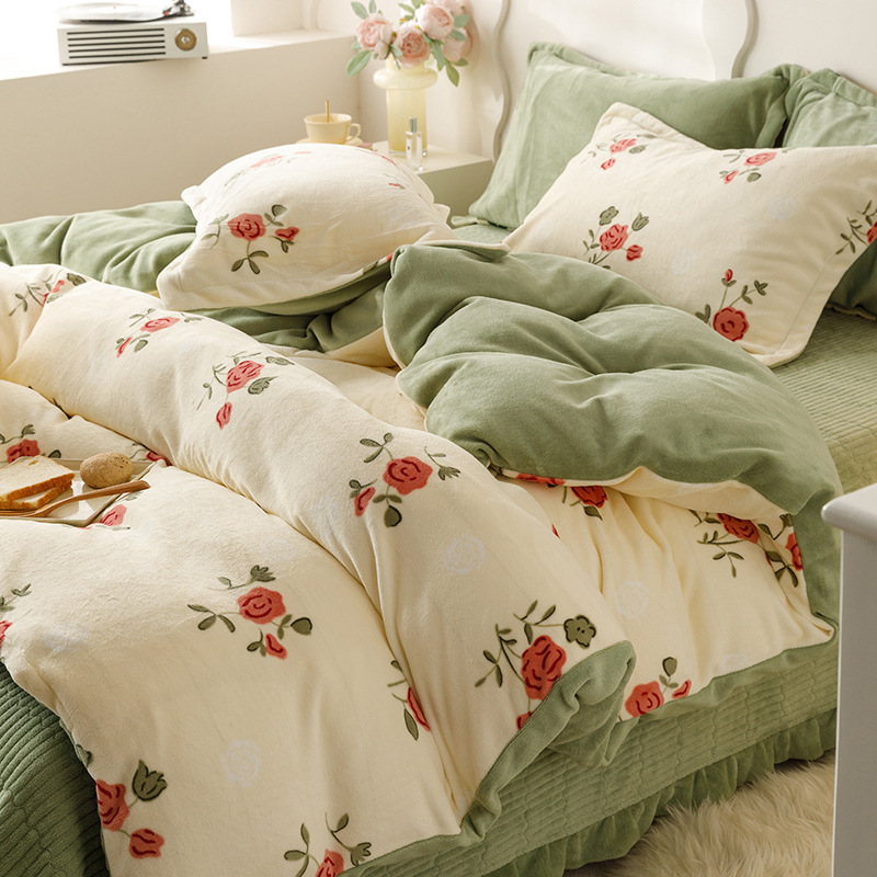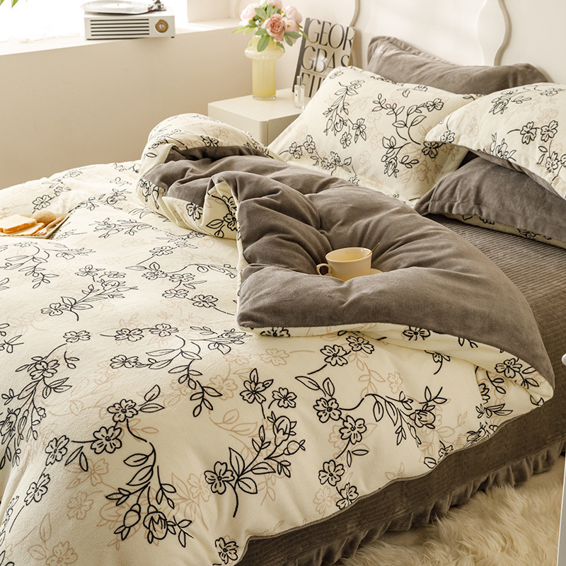 Thickened winter milk velvet four piece bed cover, bed sheet set, small and fresh Nantong home textile bedding