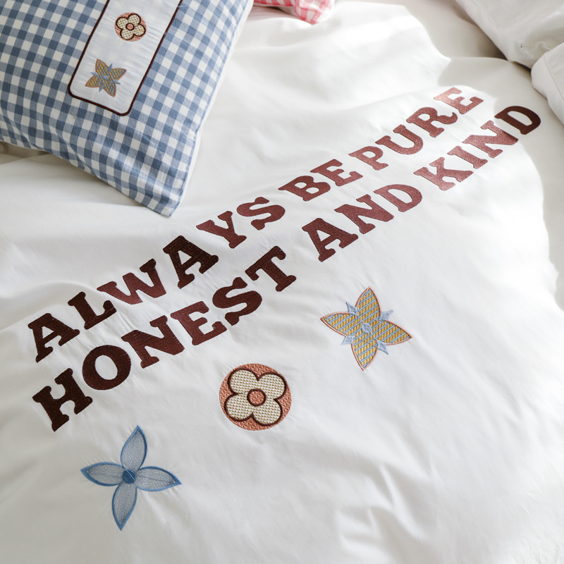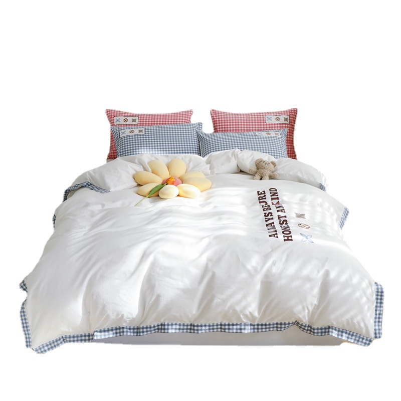 New all cotton washed cotton four piece set hotel light luxury embroidery bedding set 1.5m 1.8m bedsheet bedding
