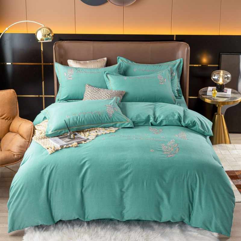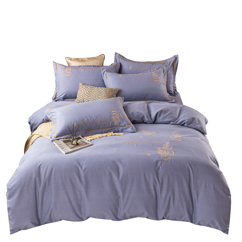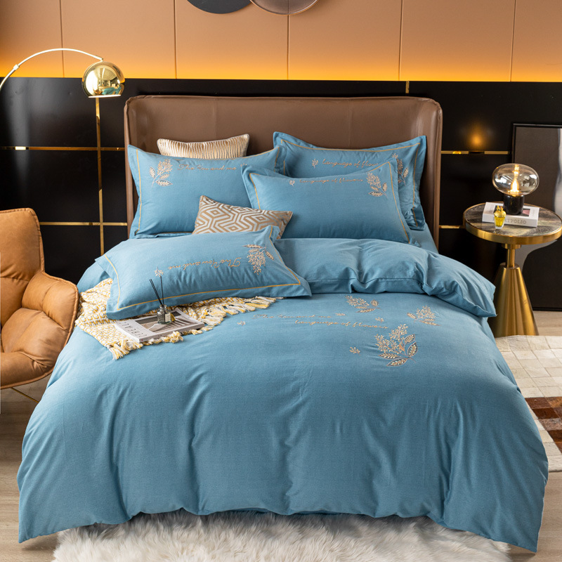 New product: Four piece set of thick cotton, brushed embroidery, twill cotton bed sheets, duvet covers, embroidered bedding set wholesale