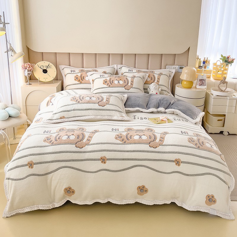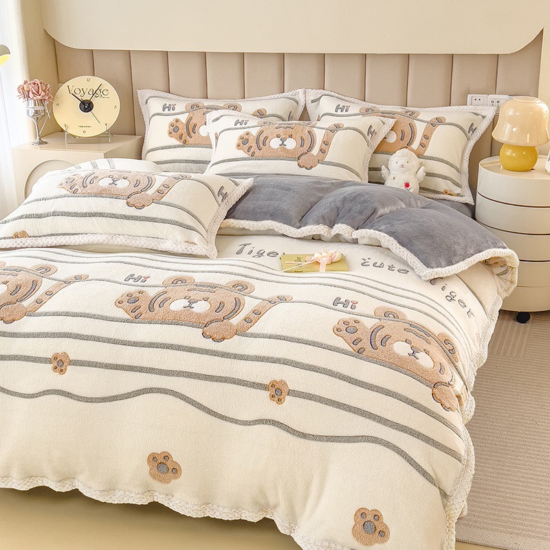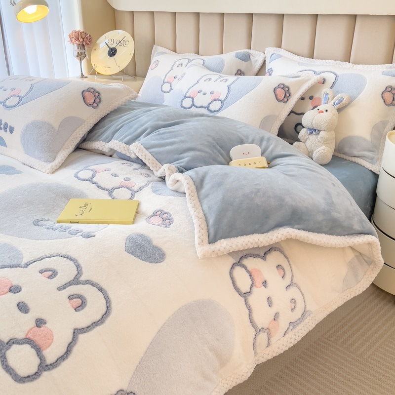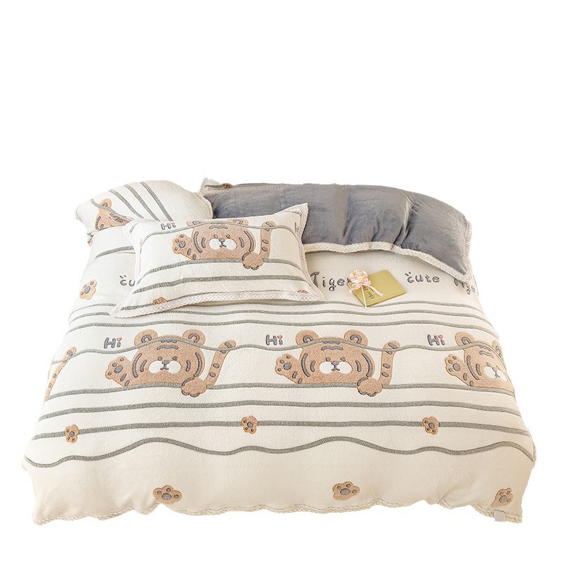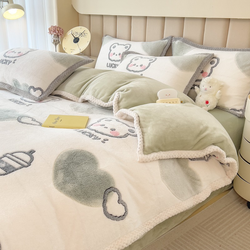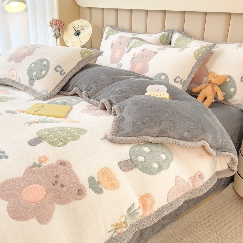 Thickened milk velvet four piece set, winter coral velvet double-sided dormitory bed, single duvet set, flannel and velvet three piece set