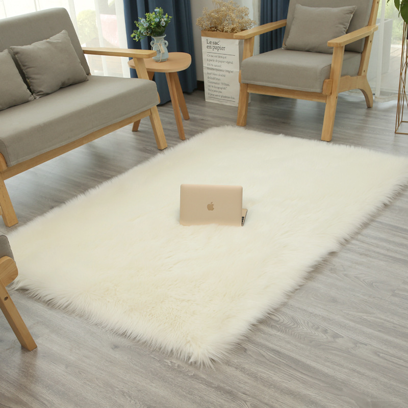 Cross border minimalist home bedroom plush floor mat, imitation wool leather carpet, floating window mat, living room balcony anti slip foot mat