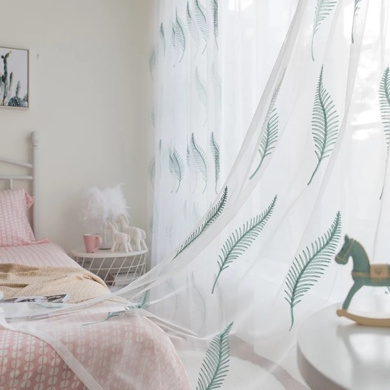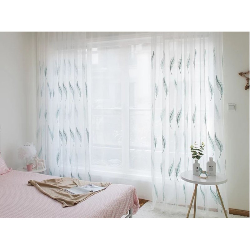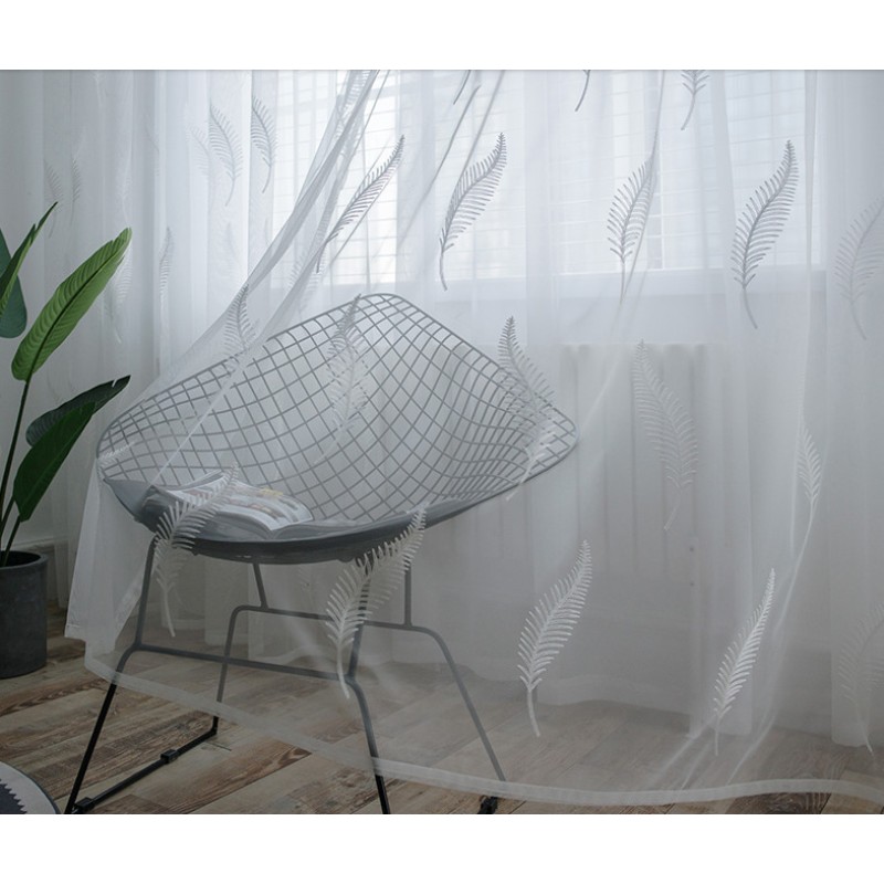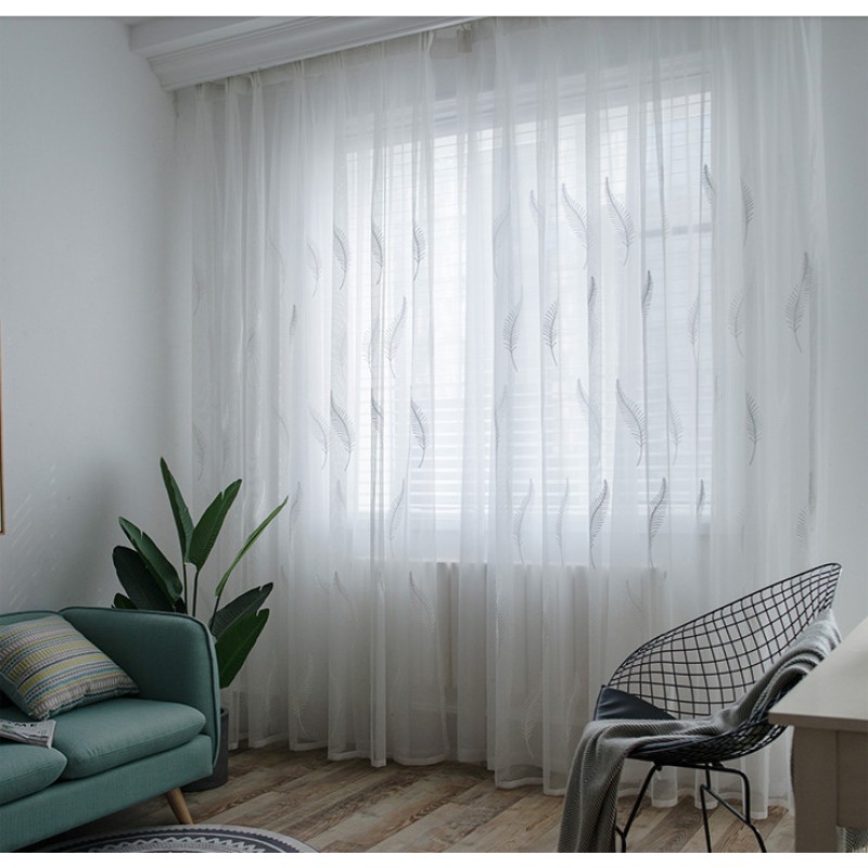 Cross border large feather embroidered window screen, transparent embroidered curtain, living room and bedroom curtains can be customized