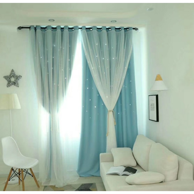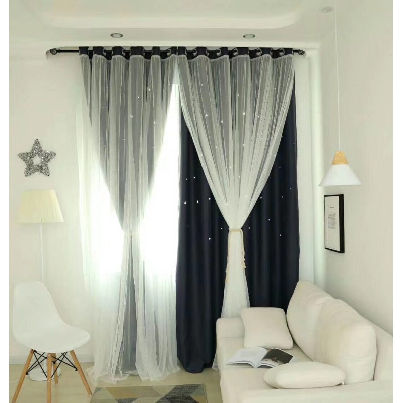 High precision thickened star curtains with hollowed out star shading curtains and window screens for foreign trade double-layer customization
