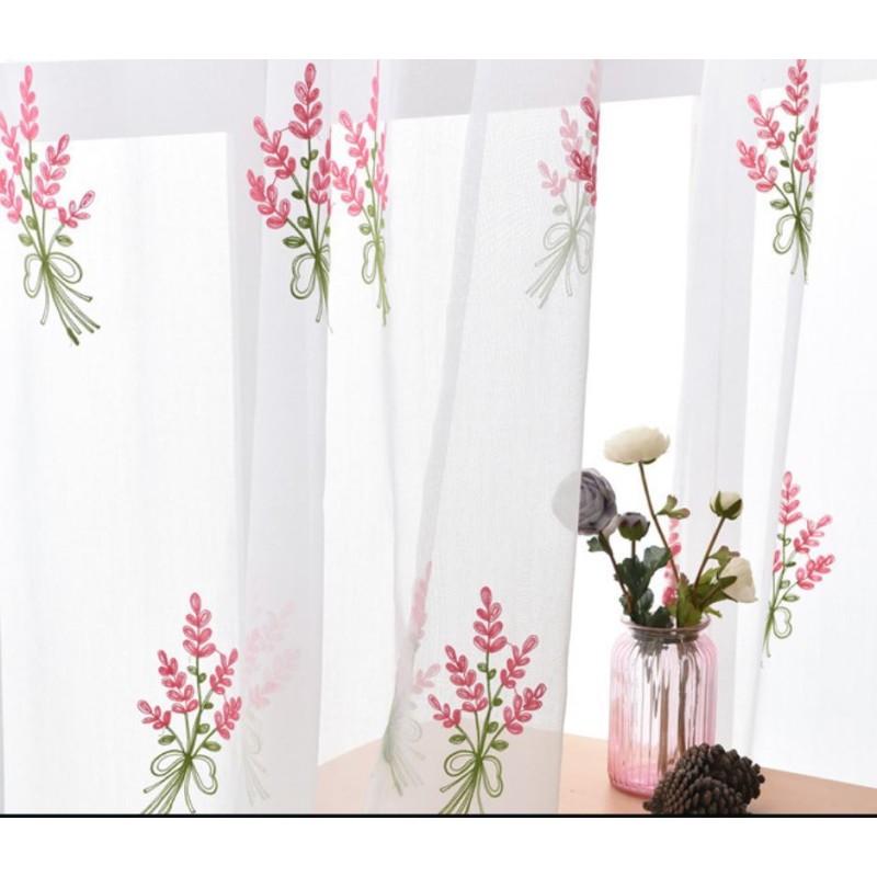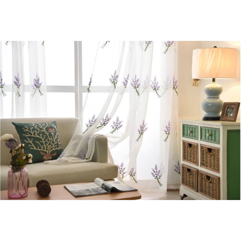 New Lavender Embroidered Window Screen Purple Pink Blue Cotton Thread Embroidered Window Screen Manufacturer Wholesale