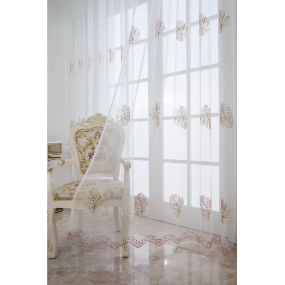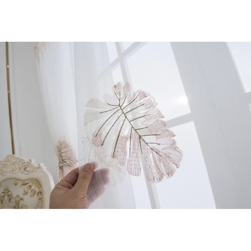 New Banana Leaf Embroidered Window Screen White Screen Embroidered Window Screen Living Room Bedroom Special Cross border