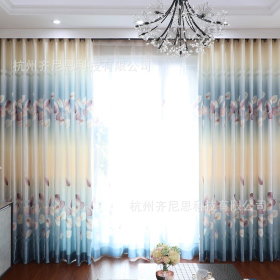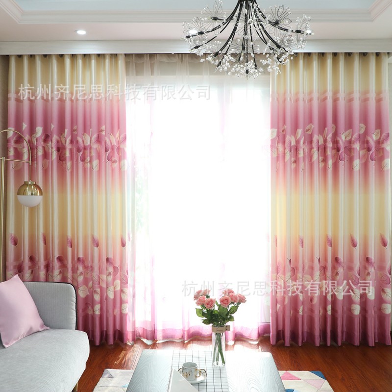 Cross border pastoral printed curtains, blackout fabric, luxury leaf finished curtains, foreign trade, AliExpress, Amazon