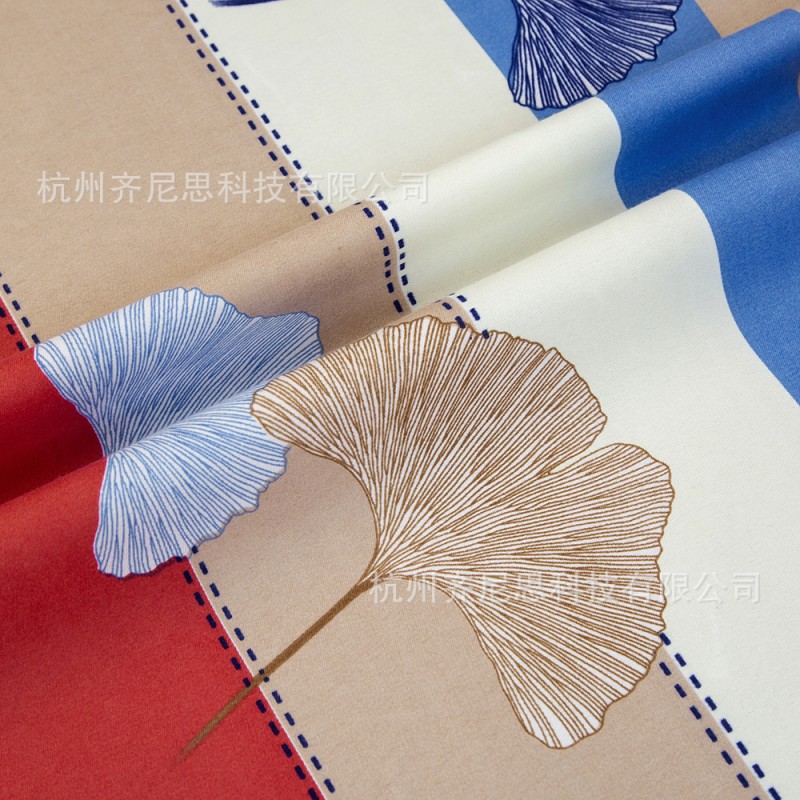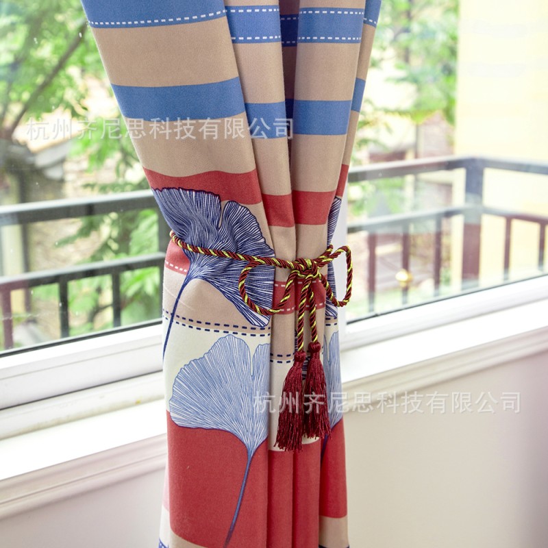 Foreign trade printed curtains, semi blackout curtains, color strips, ginkgo leaves, cross-border exclusive supply