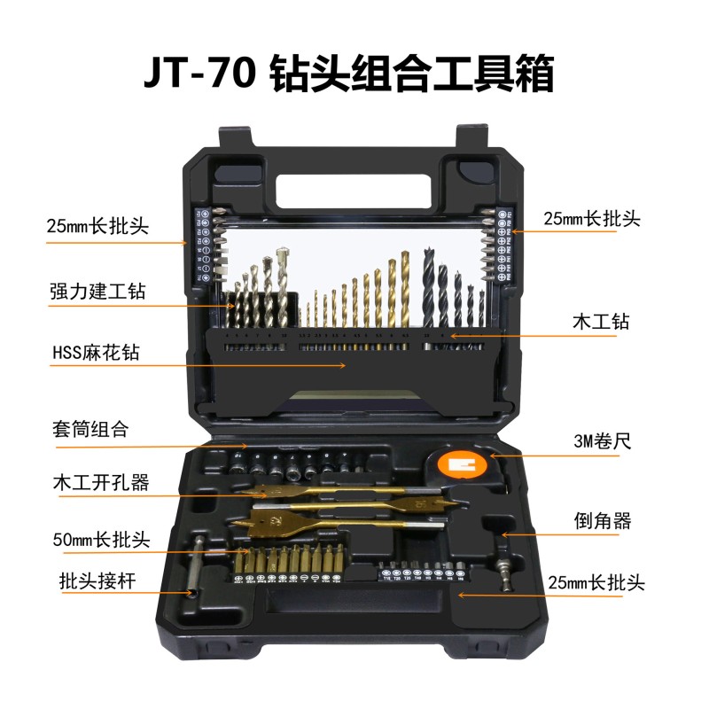 Manufacturer direct sales Anhai 70 piece set drill bit combination tool set, electric drill matching screwdriver head woodworking hole opener