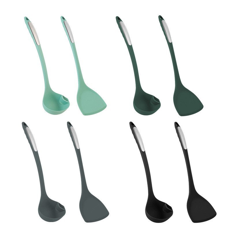 Silicone spatula non stick pan special food grade high-temperature resistant stir fry spatula with curved handle integrated Chinese spatula new Nordic style