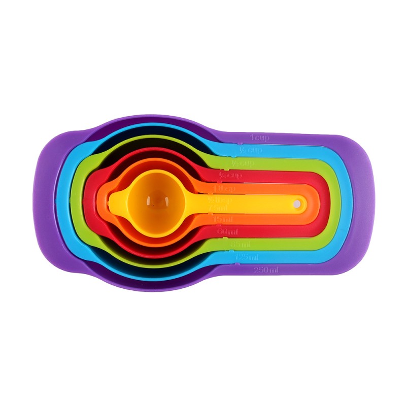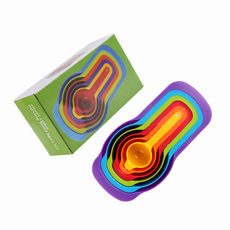 6-piece set of rainbow plastic measuring cups, measuring spoons, baking tools, 6-piece set of measuring spoons, seasoning spoons, milk powder coffee spoons