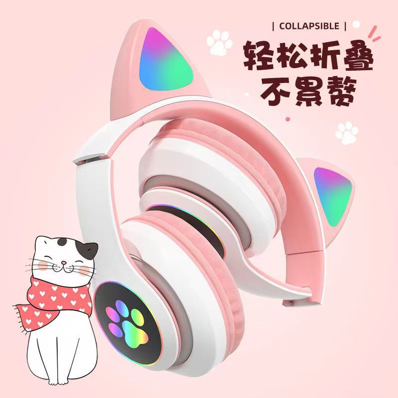 Luminous Cat Ears Bluetooth Earphones Wireless Headwear STN-28 Cross border Popular Cute Series New Product Manufacturer Direct Sales