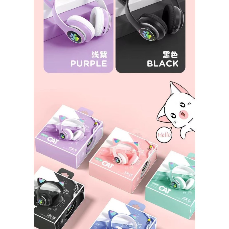 Luminous cat ear earphones STN-28 head mounted wireless Bluetooth earphones with ultra long battery life, cross-border popular product, factory direct sales