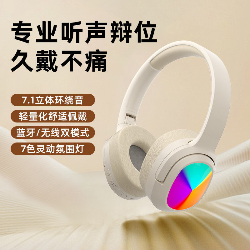 Head mounted Bluetooth luminous earphones for esports 2962, foldable card insertion, ultra long battery life, manufacturer's linear wireless earphones
