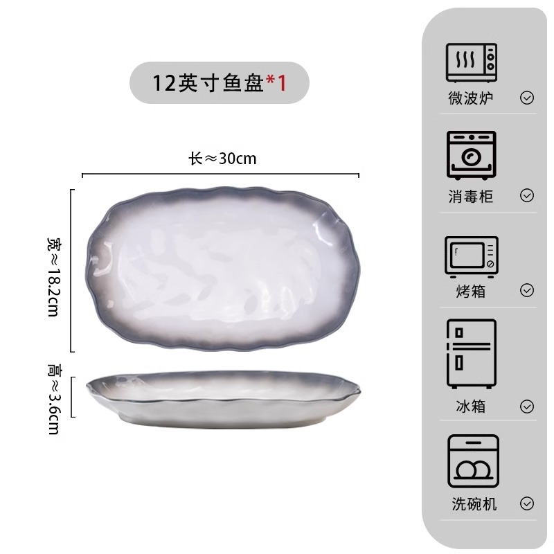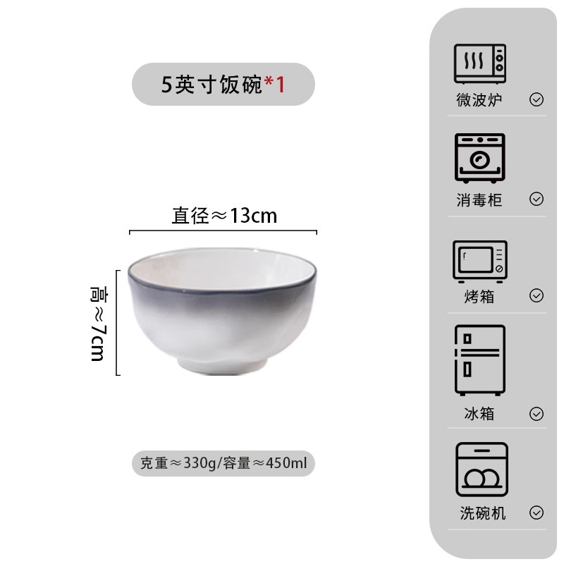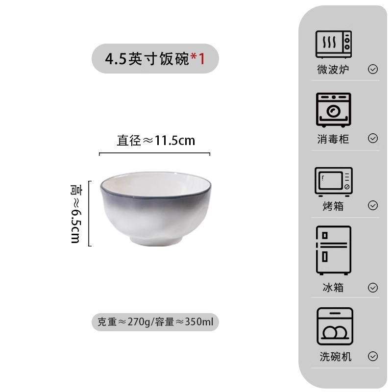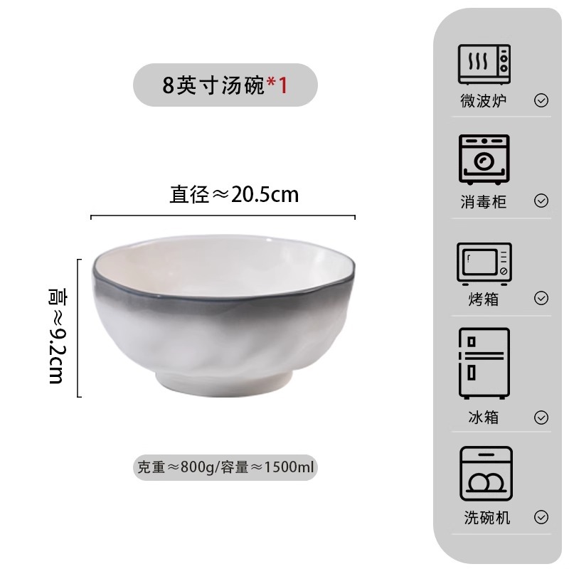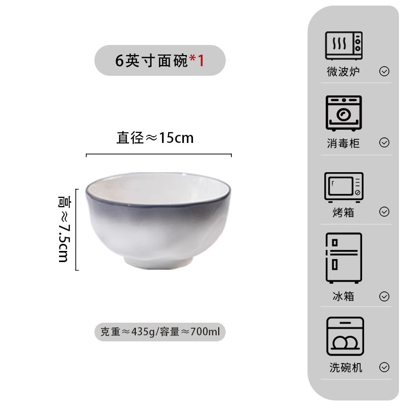 Ins style gradient gray rice bowl high-end ceramic dish set, household thick plate combination, complete set wholesale