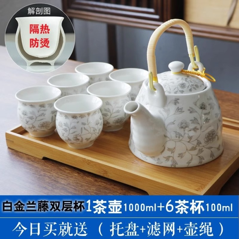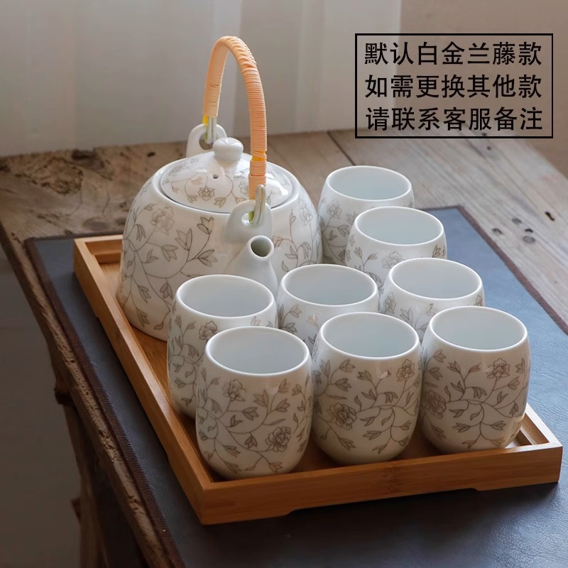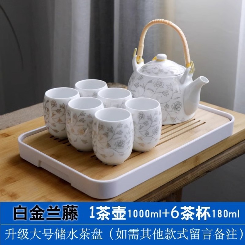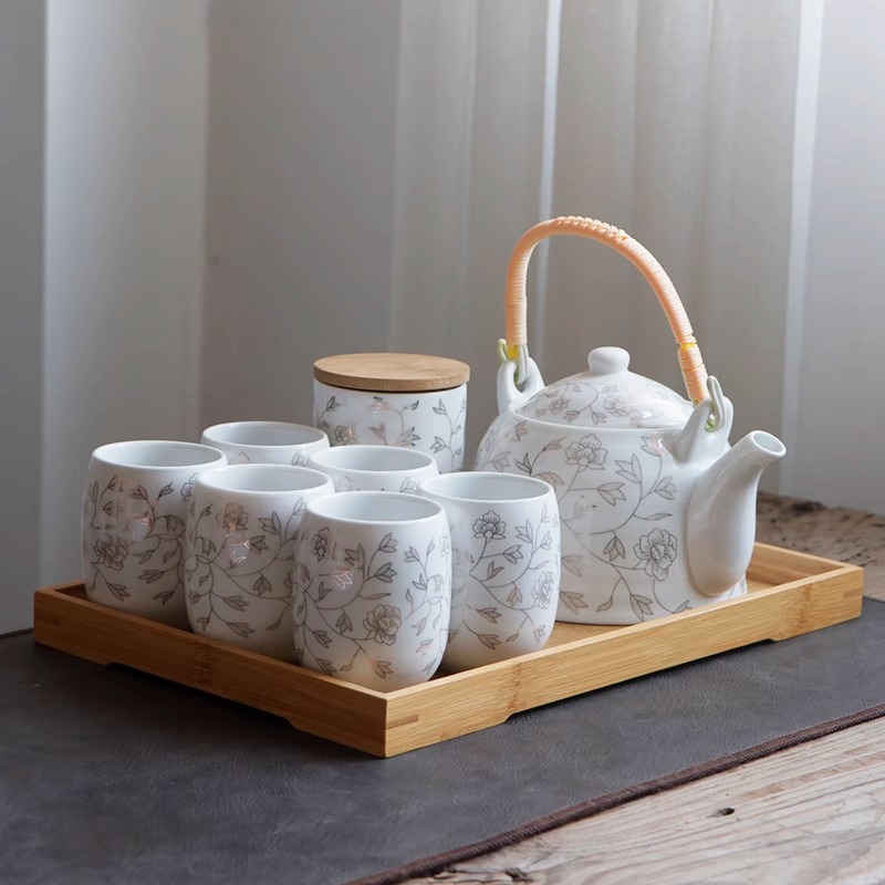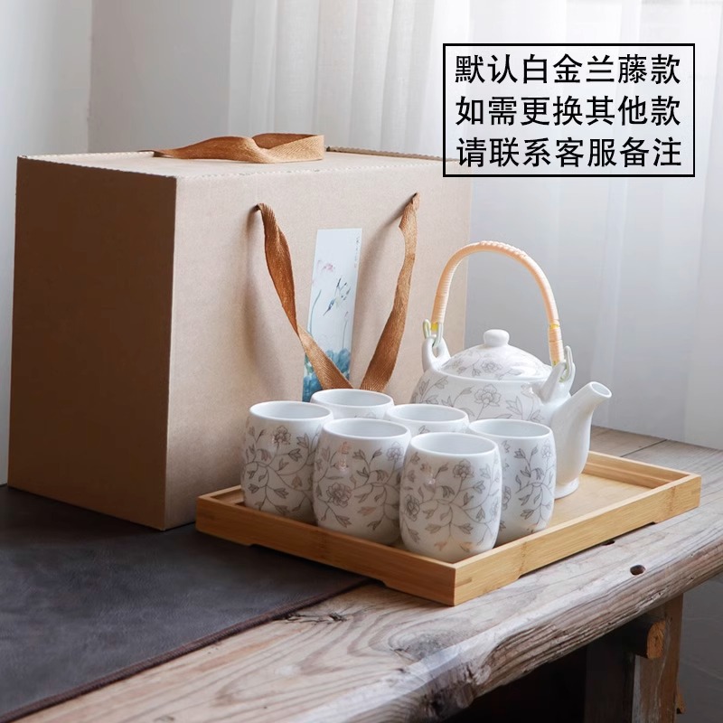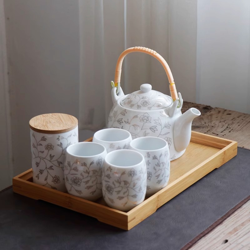 Jingdezhen Ceramic Tea Set Home Set Kung Fu Modern Minimalist Teapot Tea Cup 6-piece Set Comes with Bamboo Tray
