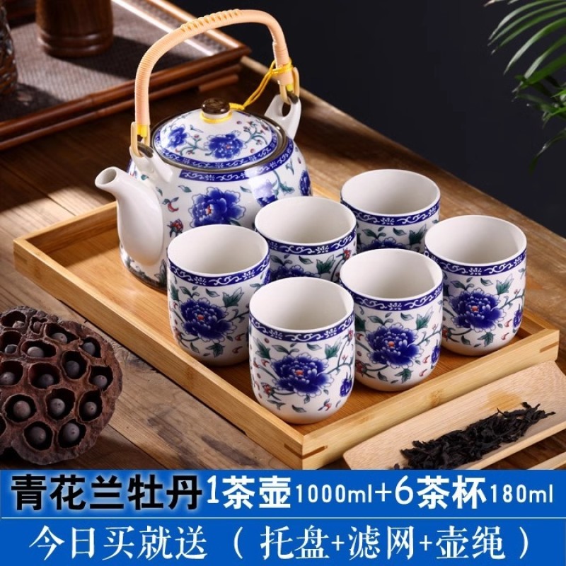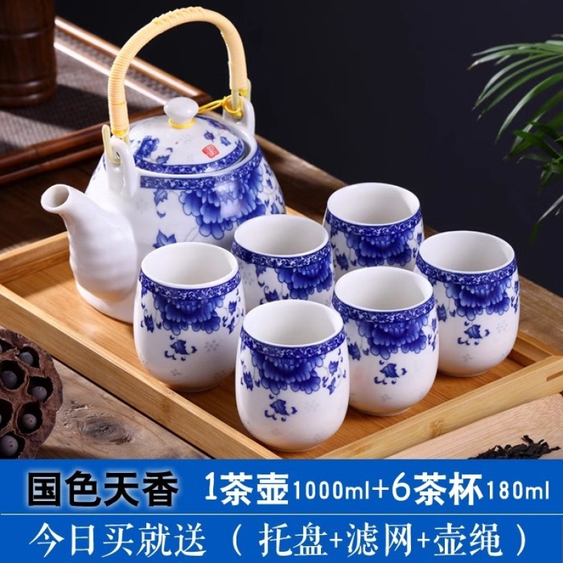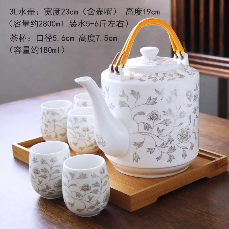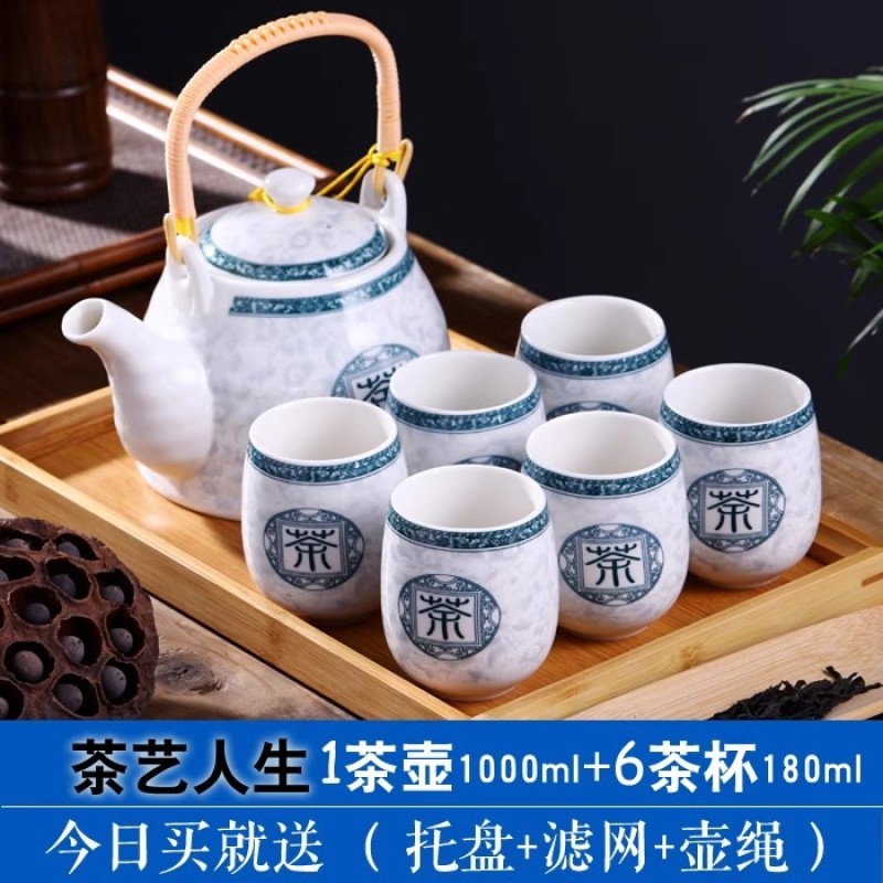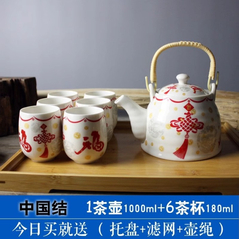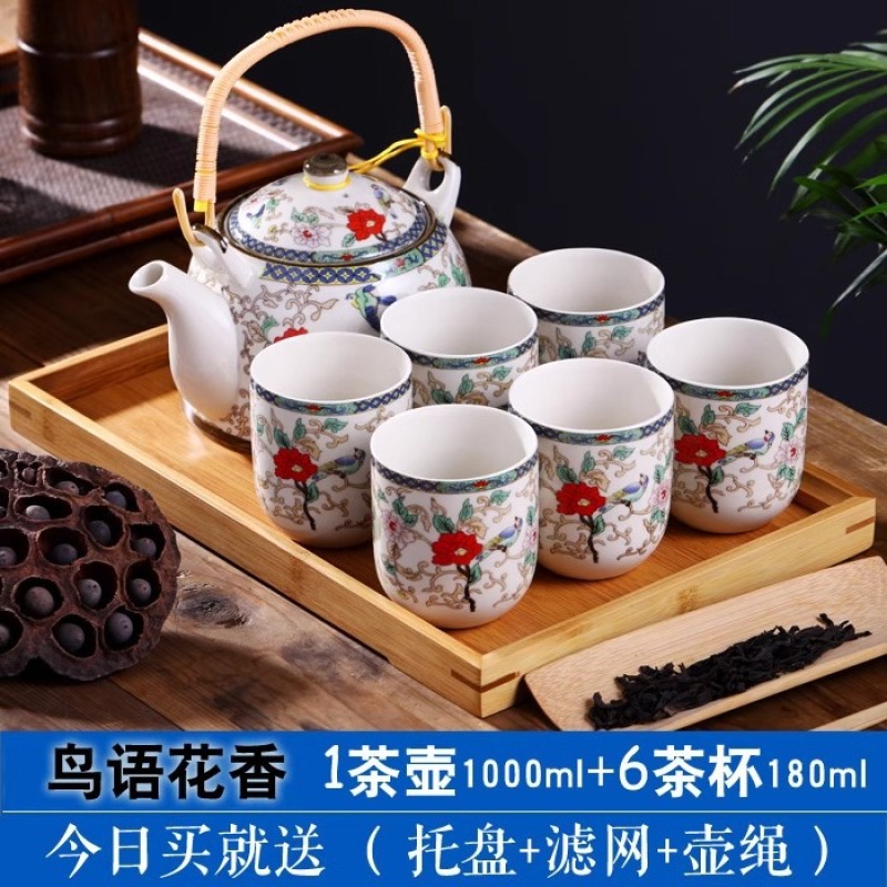 Jingdezhen Ceramic Tea Set Home Set Kung Fu Modern Minimalist Teapot Tea Cup 6-piece Set Comes with Bamboo Tray
