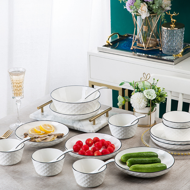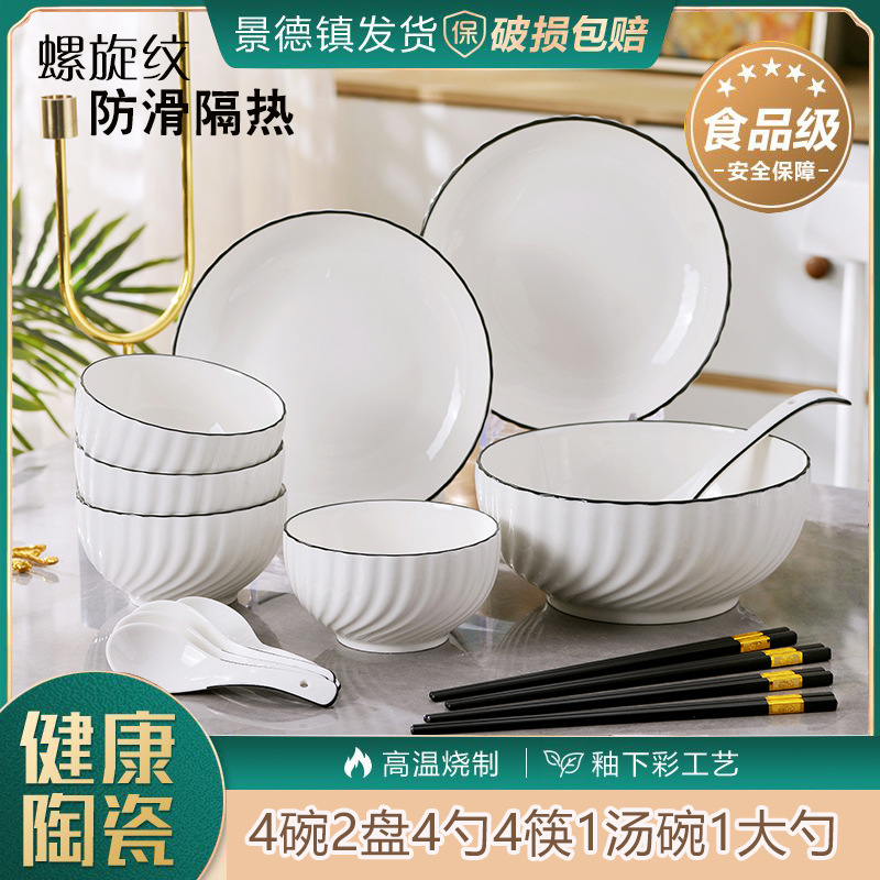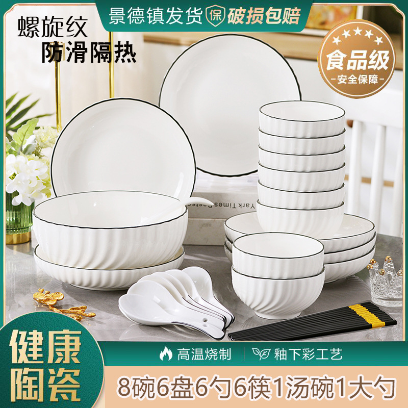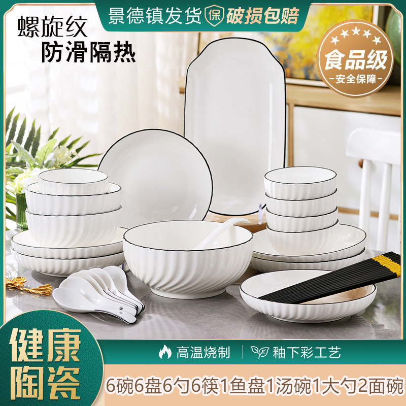 Jingdezhen Ceramic Bowl and Dish Set Household Ceramic Eating Bowl, Noodles Bowl and Dish Combination Bowl and Dish Utensils