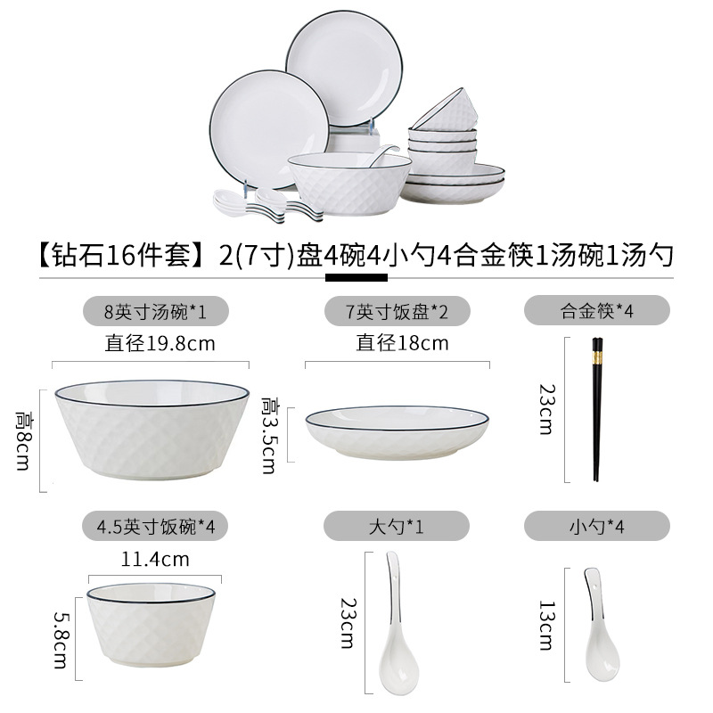 Diamond 16 piece set 4 bowls 2 small plates 4 spoons 4 alloy chopsticks 1 soup bowl 1 soup spoon (+$0.74)