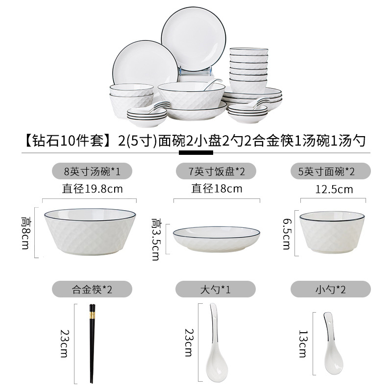Diamond 10 piece set 2 (5-inch) noodle bowls 2 small plates 2 spoons 2 alloy chopsticks 1 soup bowl 1 large spoon