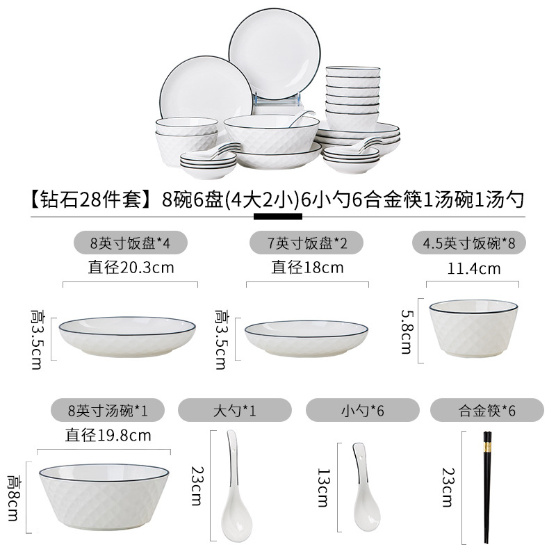 28 diamonds, 28 heads, 8 bowls, 6 plates (4 large and 2 small), 6 spoons, 6 alloy chopsticks, 1 soup bowl, 1 large spoon (+$7.37)