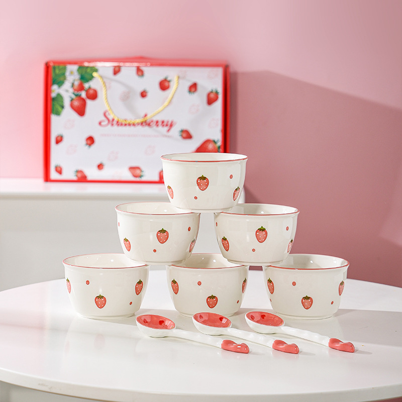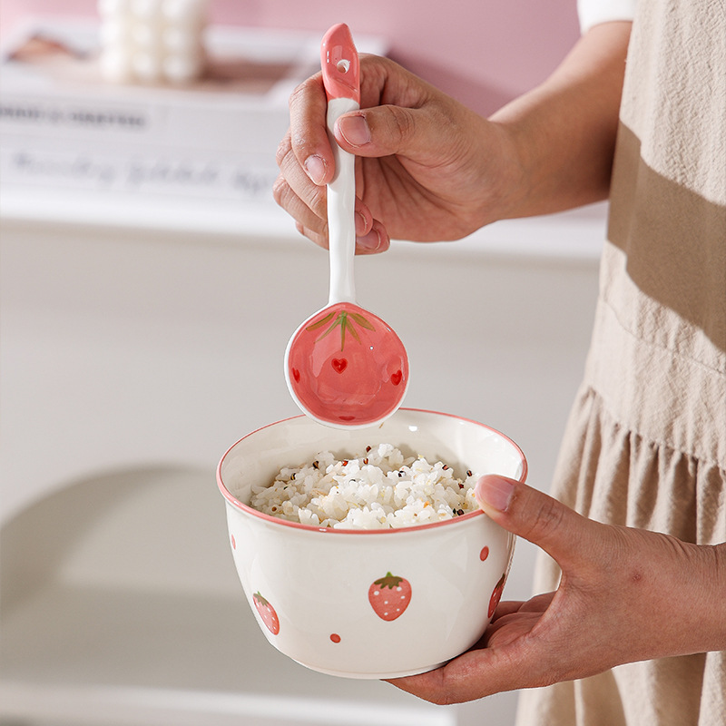 Bowl and Spoon Set Cute Rice Bowl Nordic Style Combination Tableware Ceramic Bowl ins High Appearance Bowl Dish Home Soup Bowl