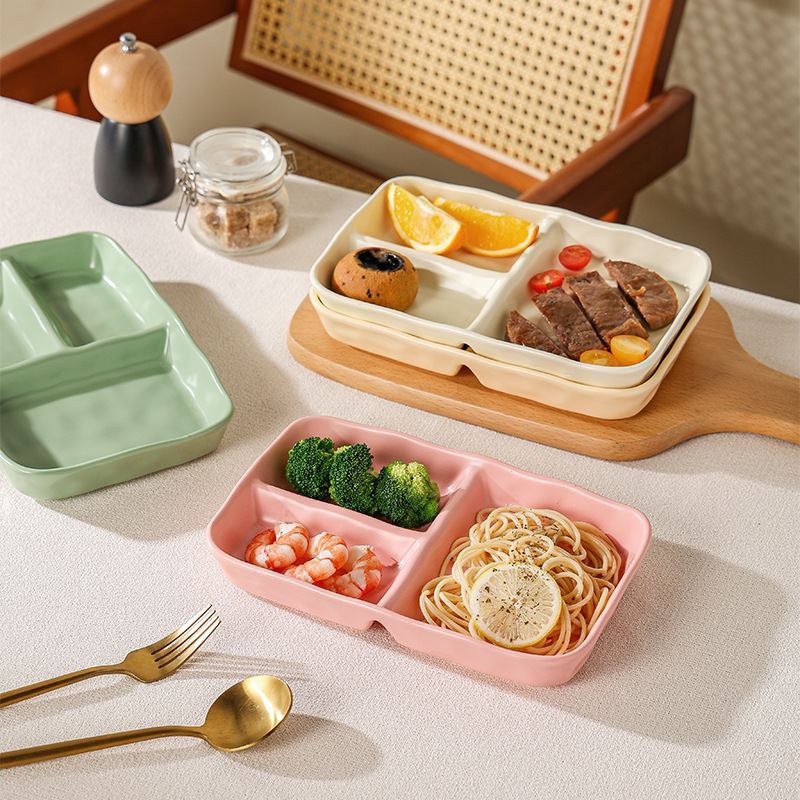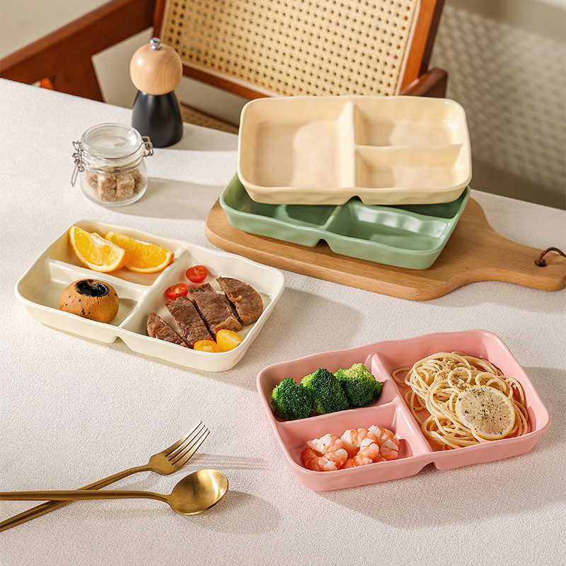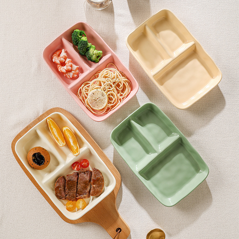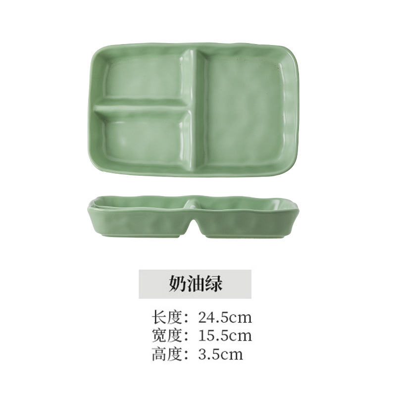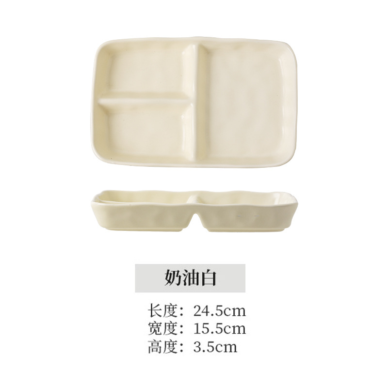Ceramic Japanese style grid plate breakfast plate, one person eating creative children's home confinement fat reduction rectangular partition rice plate