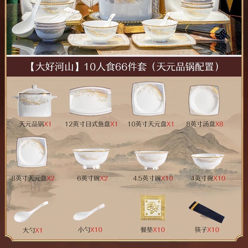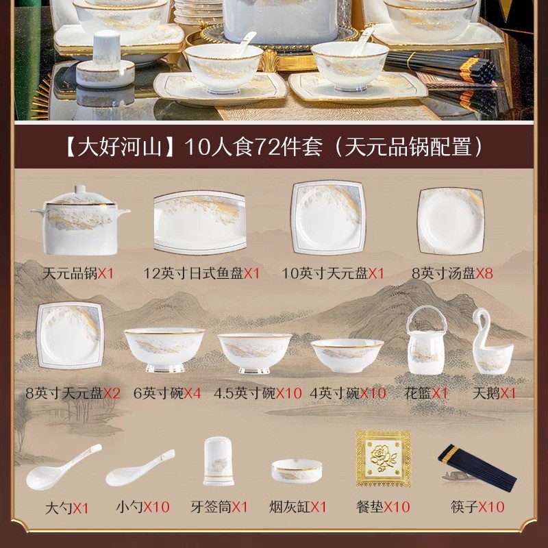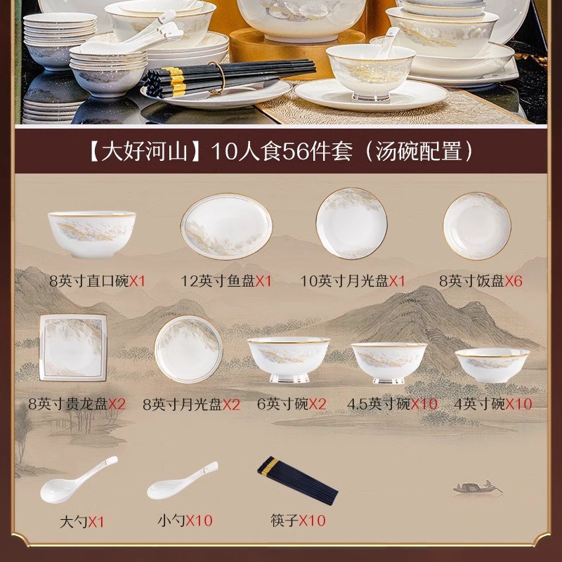 Wanjia 2024 New Jingdezhen Light Luxury Ceramic Tableware Set, Bowl and Dish Set, Household Bowl and Dish Set