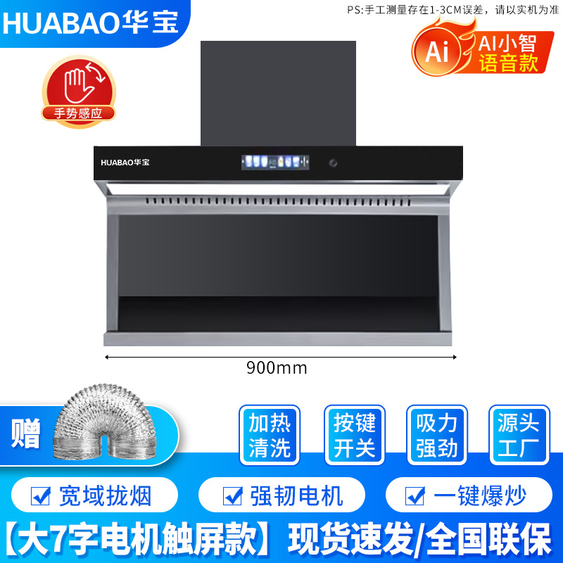 Huabao New Range Hood Top Side Double Suction Range Hood Rental Room High Suction Kitchen Household Range Hood