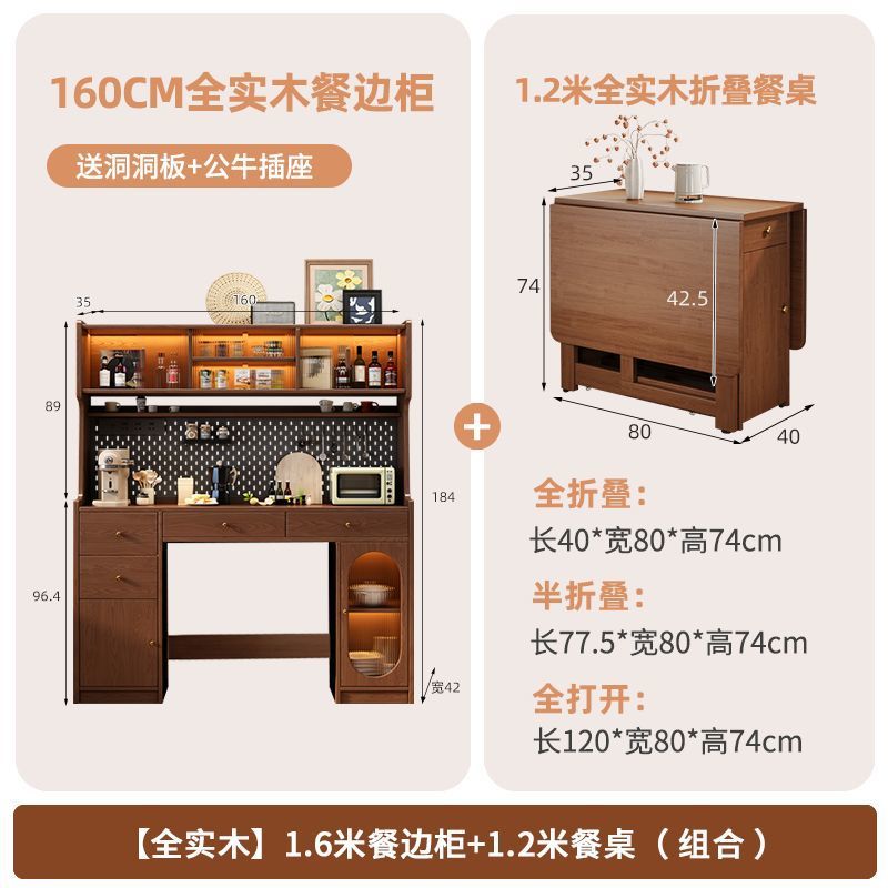 All solid wood folding dining table, dining cabinet, integrated table, small household unit, wall mounted, extendable, movable, multifunctional table