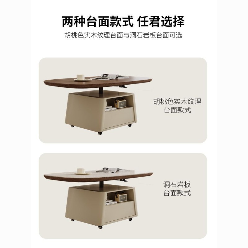 Middle ancient style coffee table, living room, household, movable rock board, minimalist lifting small apartment, multifunctional side table, tea table