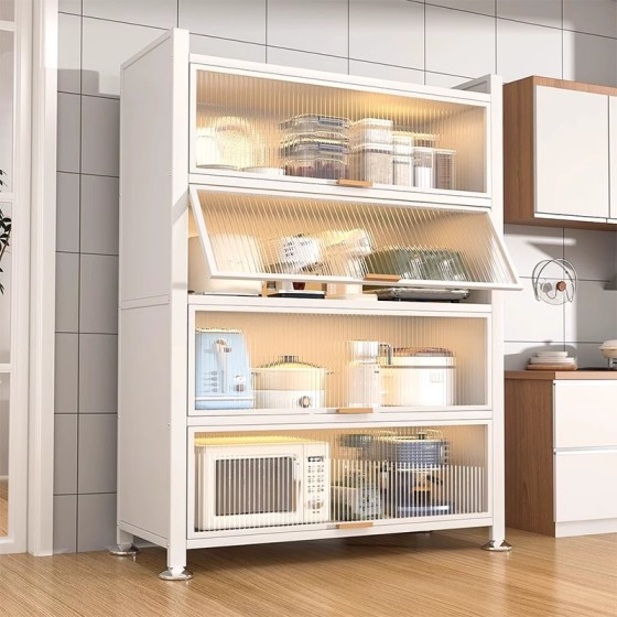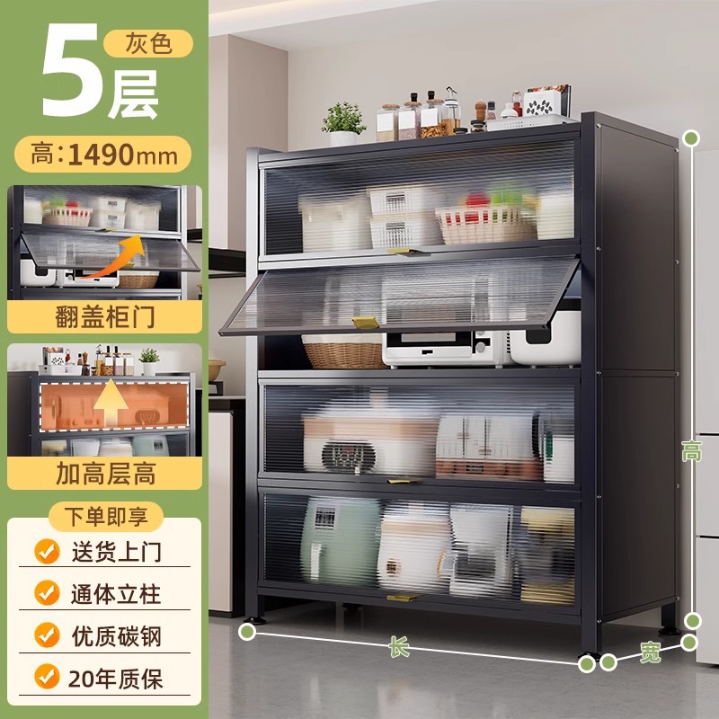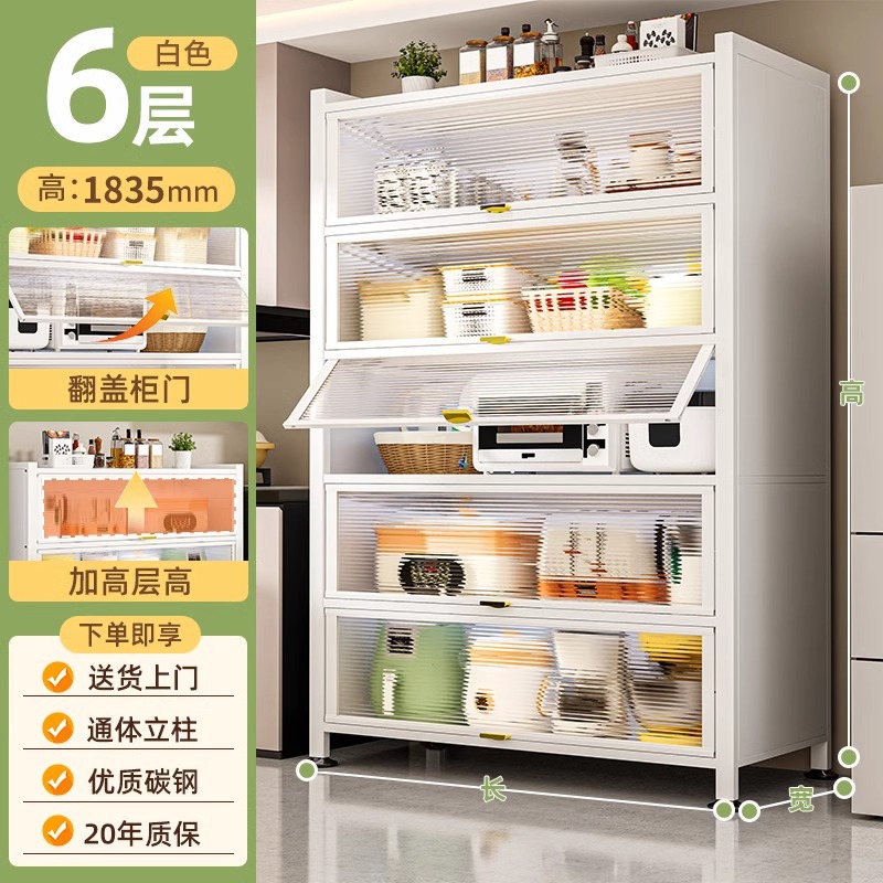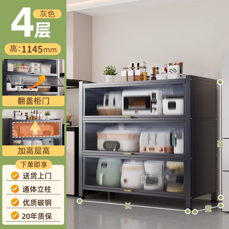 Kitchen shelves, floor standing multi-layer storage cabinets, microwave ovens, household multifunctional cabinets with doors, dust-proof storage cabinets