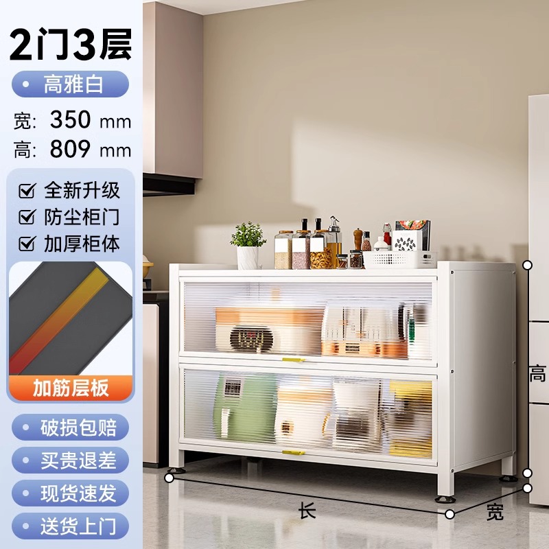 Household steel kitchen storage cabinet, floor to ceiling multi-layer shelf, microwave oven, cabinet with door, dustproof storage cabinet