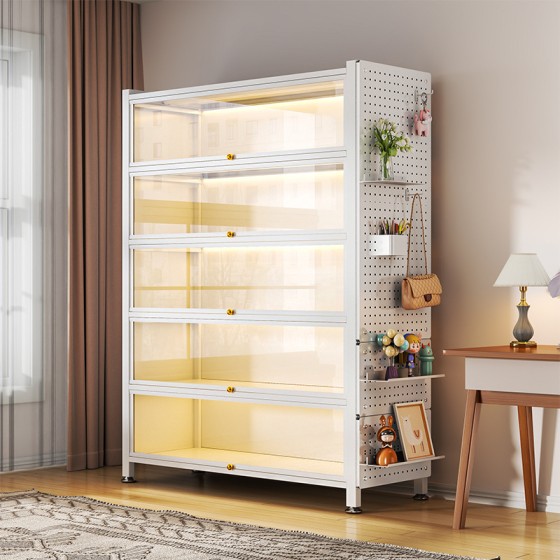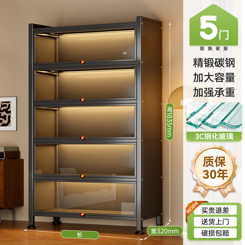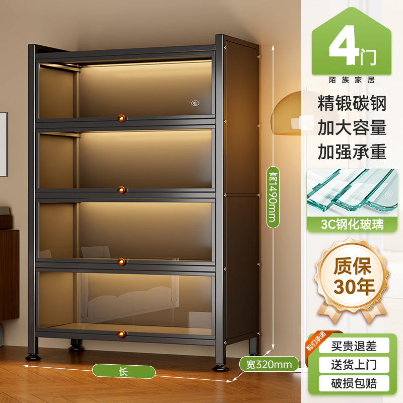 Steel Bookcase with Door Glass Bookcase Floor to Floor Dustproof Iron Handheld Display Cabinet Household Storage Cabinet Storage Cabinet