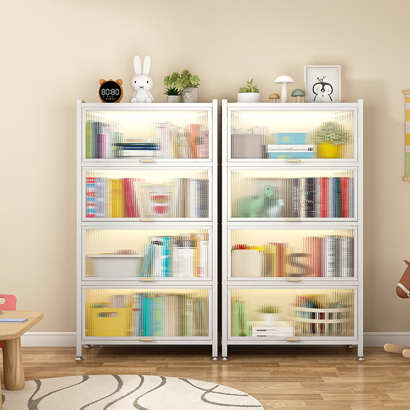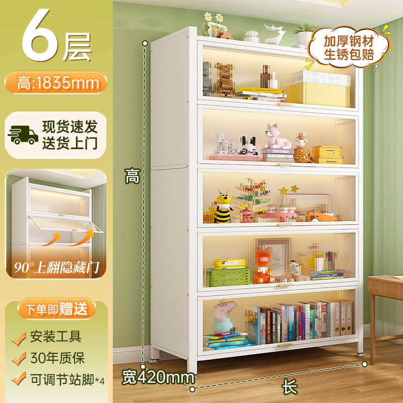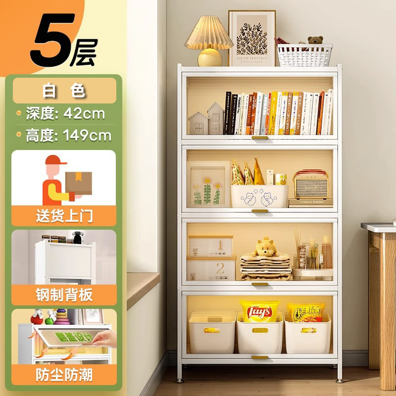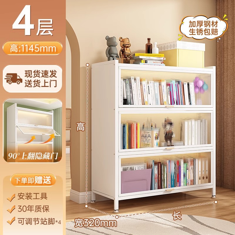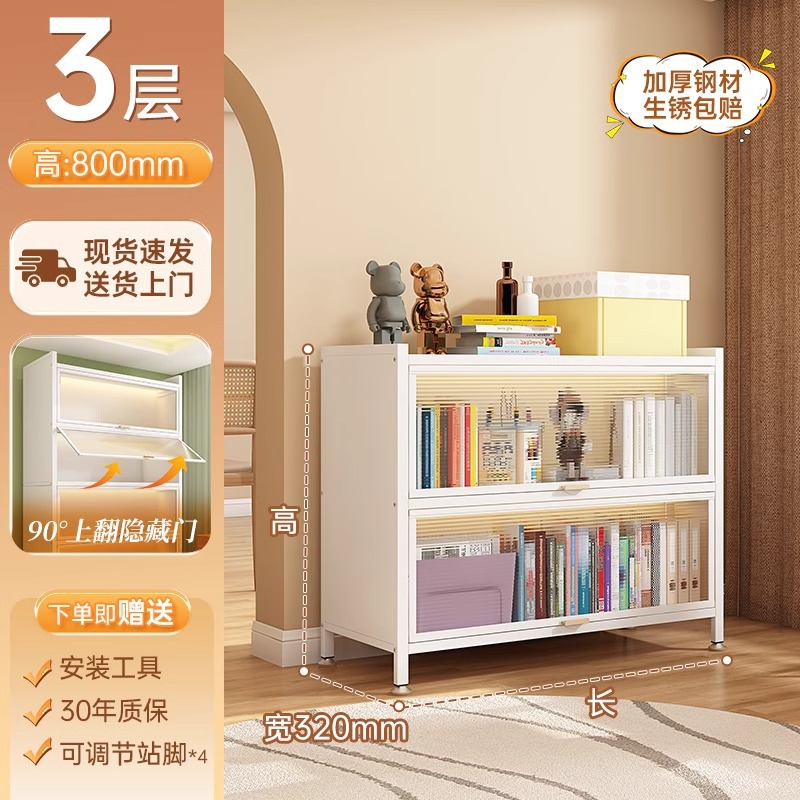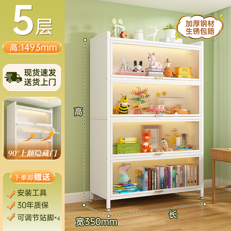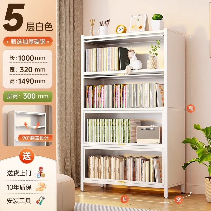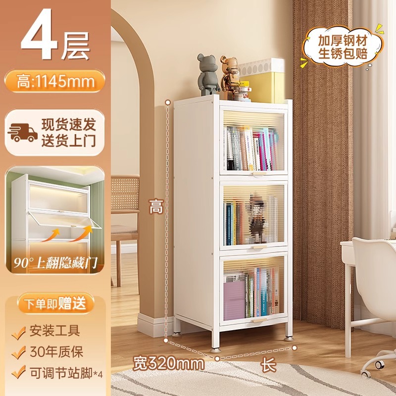 Steel bookshelf for household use, children's crevice bookshelf, dust-proof storage cabinet, shelf, floor standing living room with door, study, wrought iron