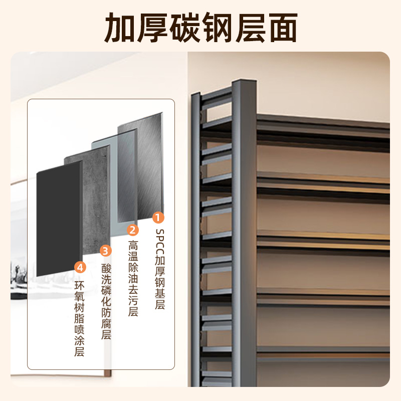 Steel shoe rack, home door, floor to ceiling multi-layer storage rack, large capacity iron storage rack, entrance door, simple shoe cabinet